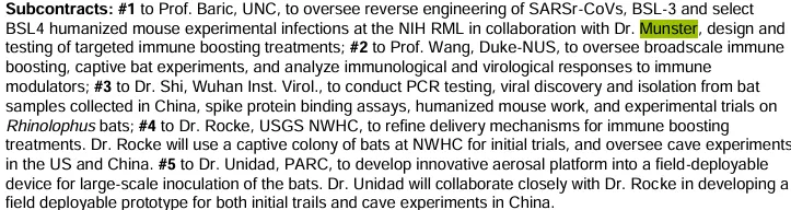 Baric apparently invited Vincent Munster of RML to join the DARPA Defuse team This pre-DARPA Defuse draft shows the eventual supply chain for creating Covid: Baric > Munster > Linfa Wang > WIV