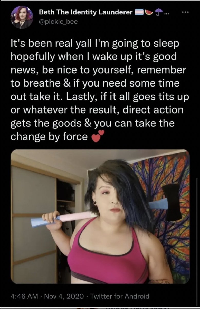 Scottish woman and butcher Amy George abducted an 11-year-old girl while dressed in female clothing. No idea why this was mentioned in court – of course she was wearing women’s clothing, she's a woman! Amy took the girl home and sexually abused her over a 27-hour period. 5/11 https://t.co/xy3DmnqZrc