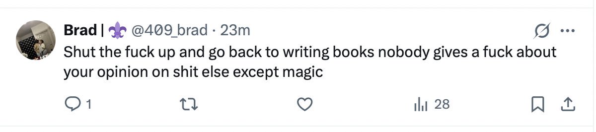 My opinion on magic is the same as my opinion on women with dicks: neither are real. However, if you want to prove me wrong, by all means jump off a roof on a broomstick. https://t.co/jyiFxKJ2Cr