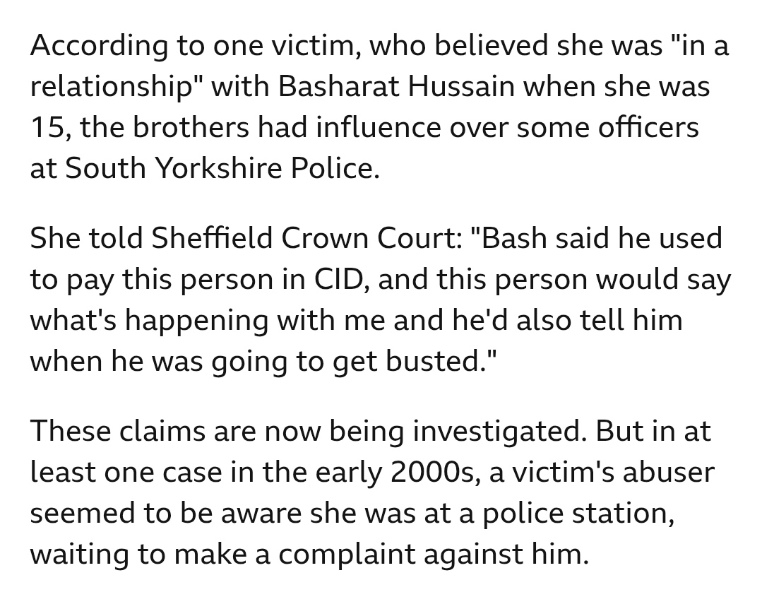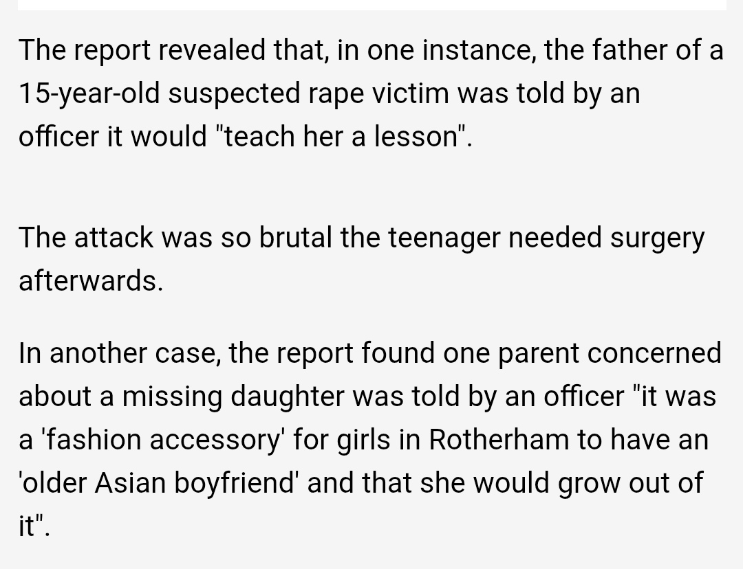 The details emerging about what the rape gangs (why call them 'grooming' gangs? It's like calling those who stab people to death 'knife owners') did to girls in Rotherham are downright horrific. The allegations of possible police corruption in the case are almost beyond belief.