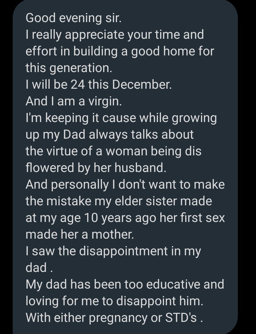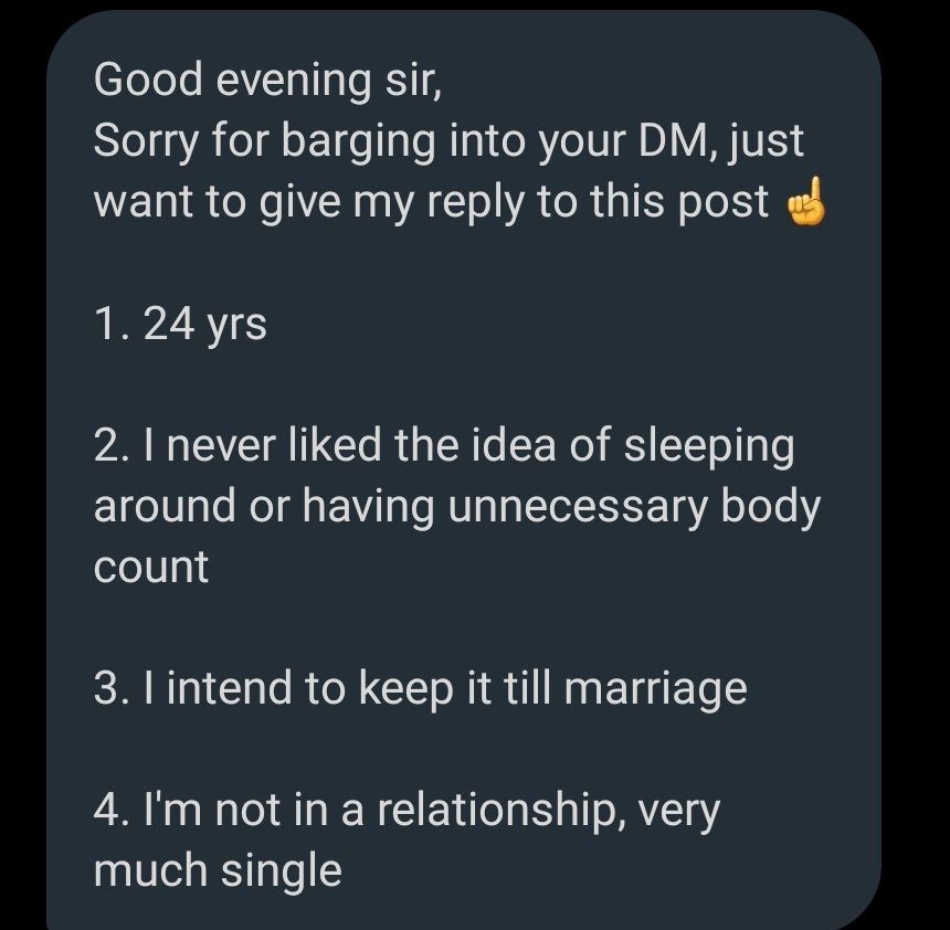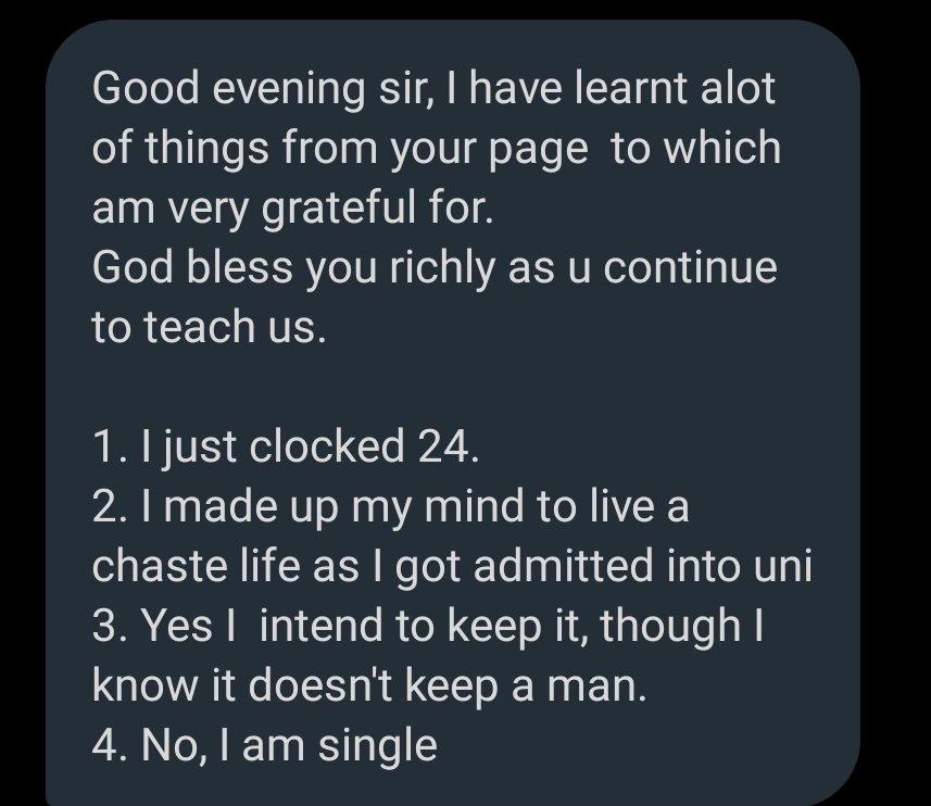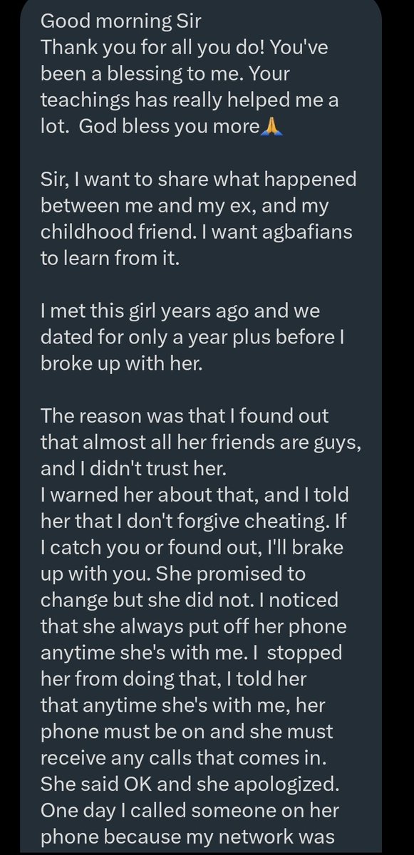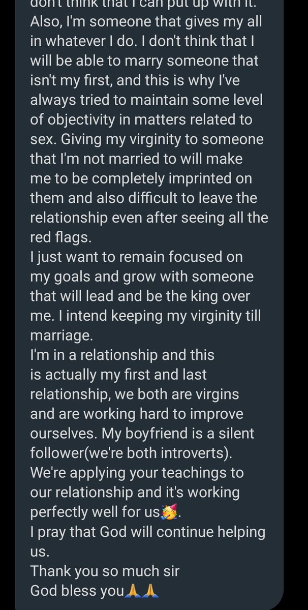 key prayer point in their lives. Don't make it easy for them because if you do, they'll take advantage of it & blame you for their deeds. After all, you were the one who saw her and told her you wanted to marry her just like that. Back to the man in the DM. You made the