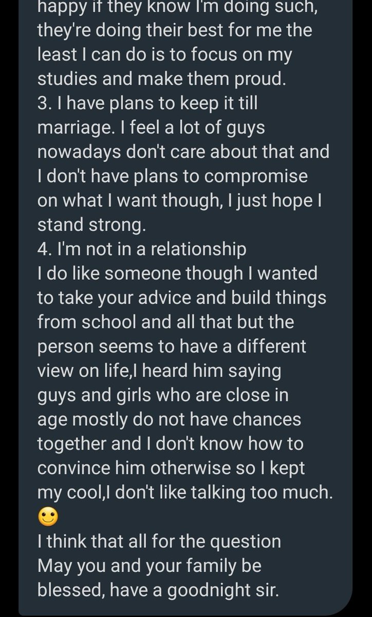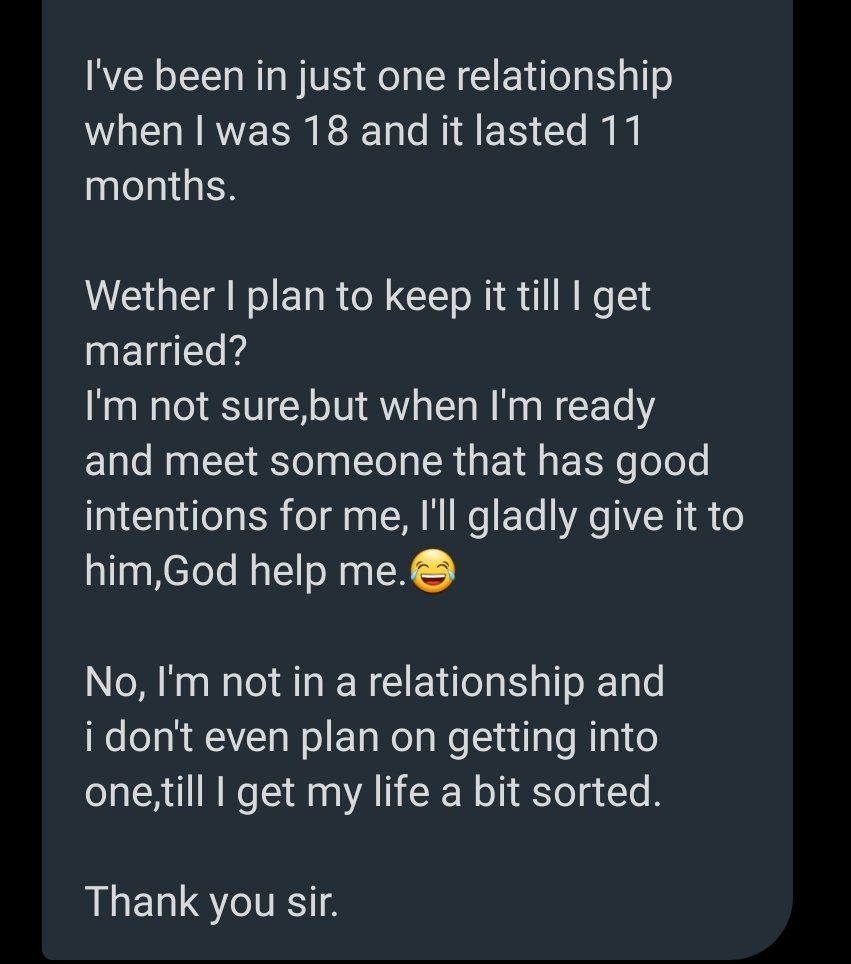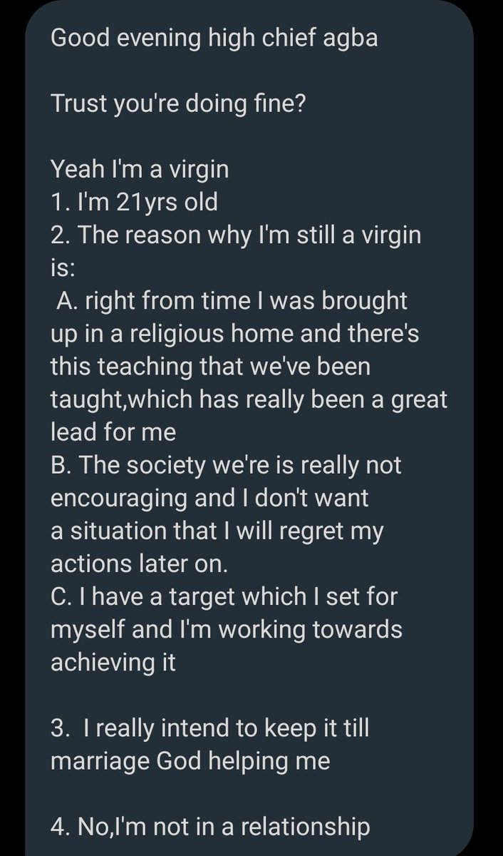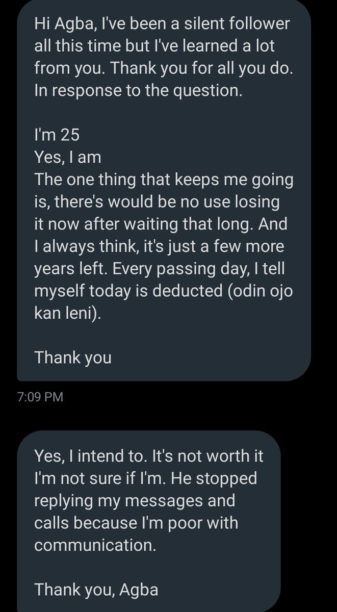 key prayer point in their lives. Don't make it easy for them because if you do, they'll take advantage of it & blame you for their deeds. After all, you were the one who saw her and told her you wanted to marry her just like that. Back to the man in the DM. You made the