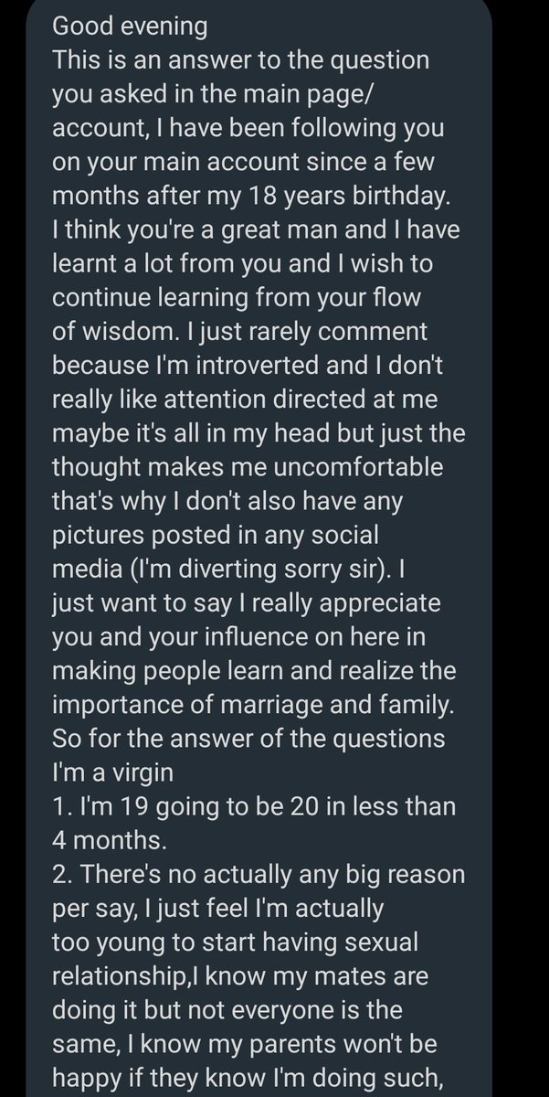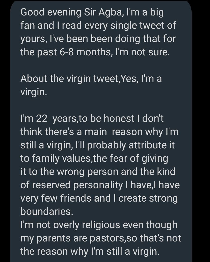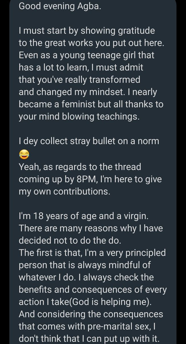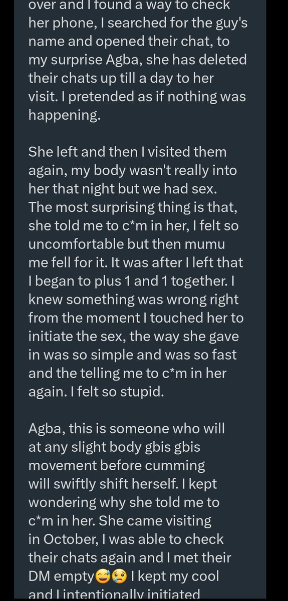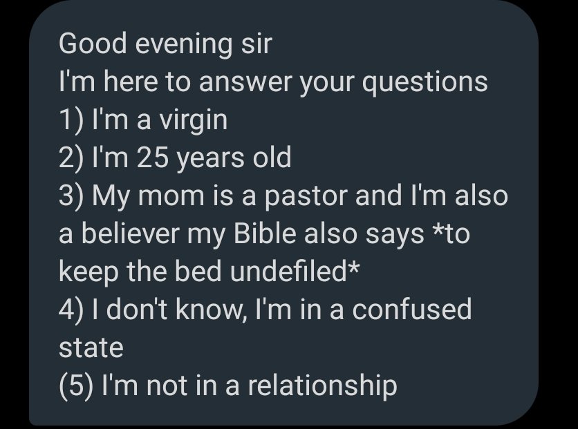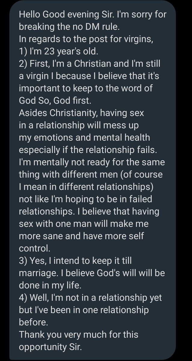 important is that he says they have good sexual compatibility. 6) Destroying properties & tearing of clothes. Before I shared his DM yesterday, I shared a thread that I wrote last year. Telling you people my experience with my wife in that aspect. I don't know but I can
