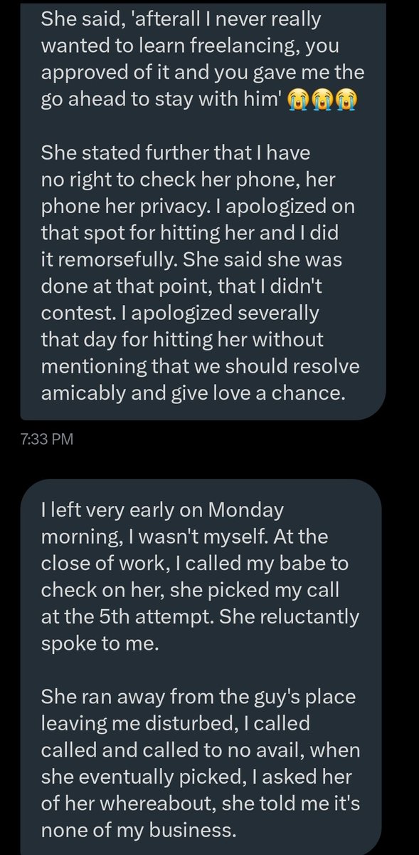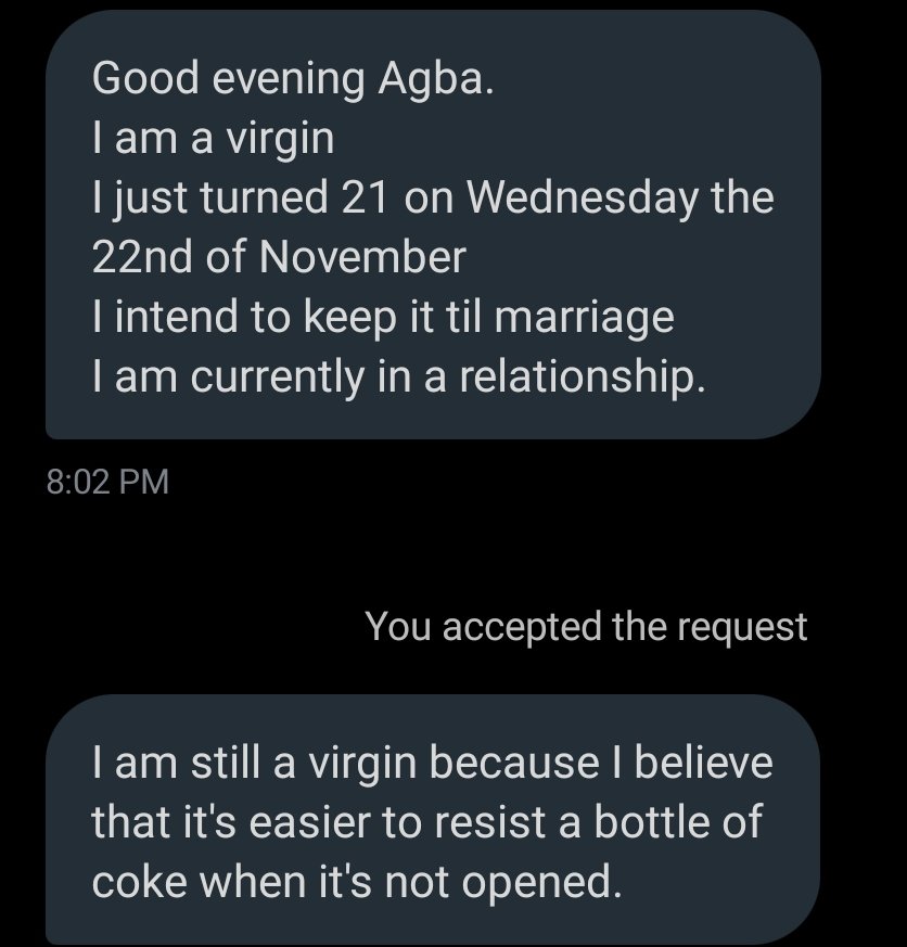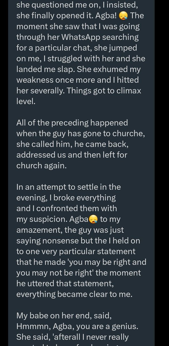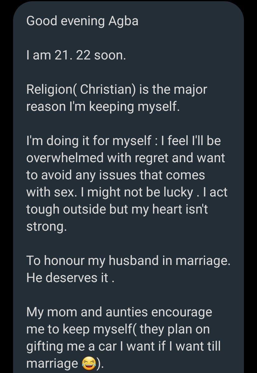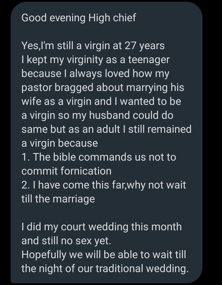 important is that he says they have good sexual compatibility. 6) Destroying properties & tearing of clothes. Before I shared his DM yesterday, I shared a thread that I wrote last year. Telling you people my experience with my wife in that aspect. I don't know but I can