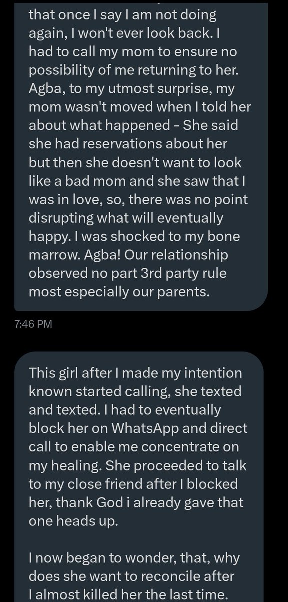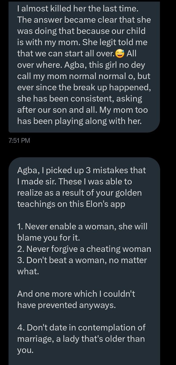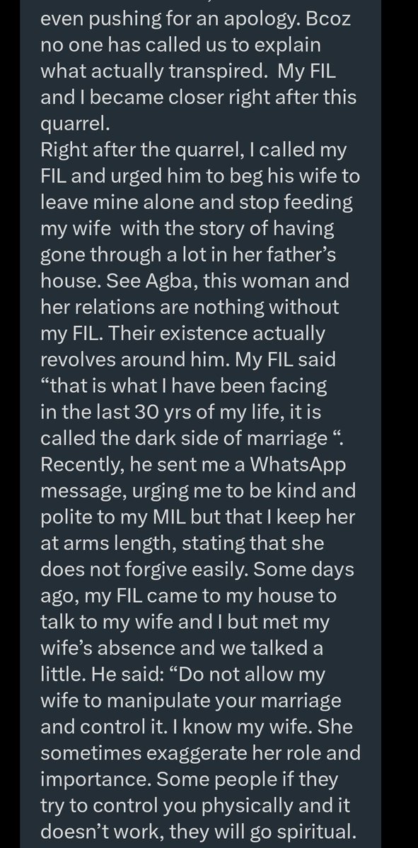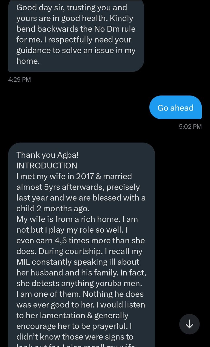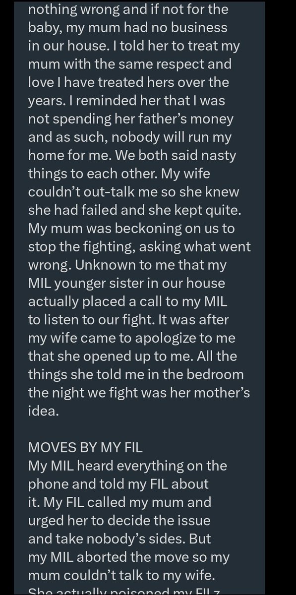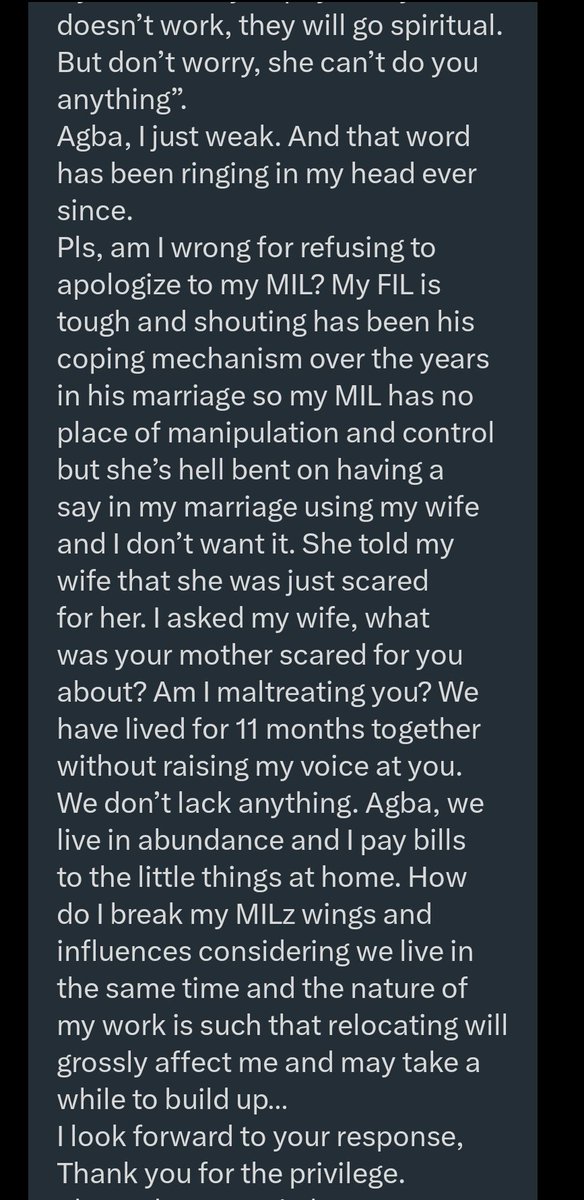 A typical example of how a MIL can destroy her daughter's marriage if she's not careful. Please read this DM carefully and note the red flags I've been teaching for a while. If not that this man decided to be his own man without looking for who to feed him, they would have https://t.co/0PuMvJv8Yi