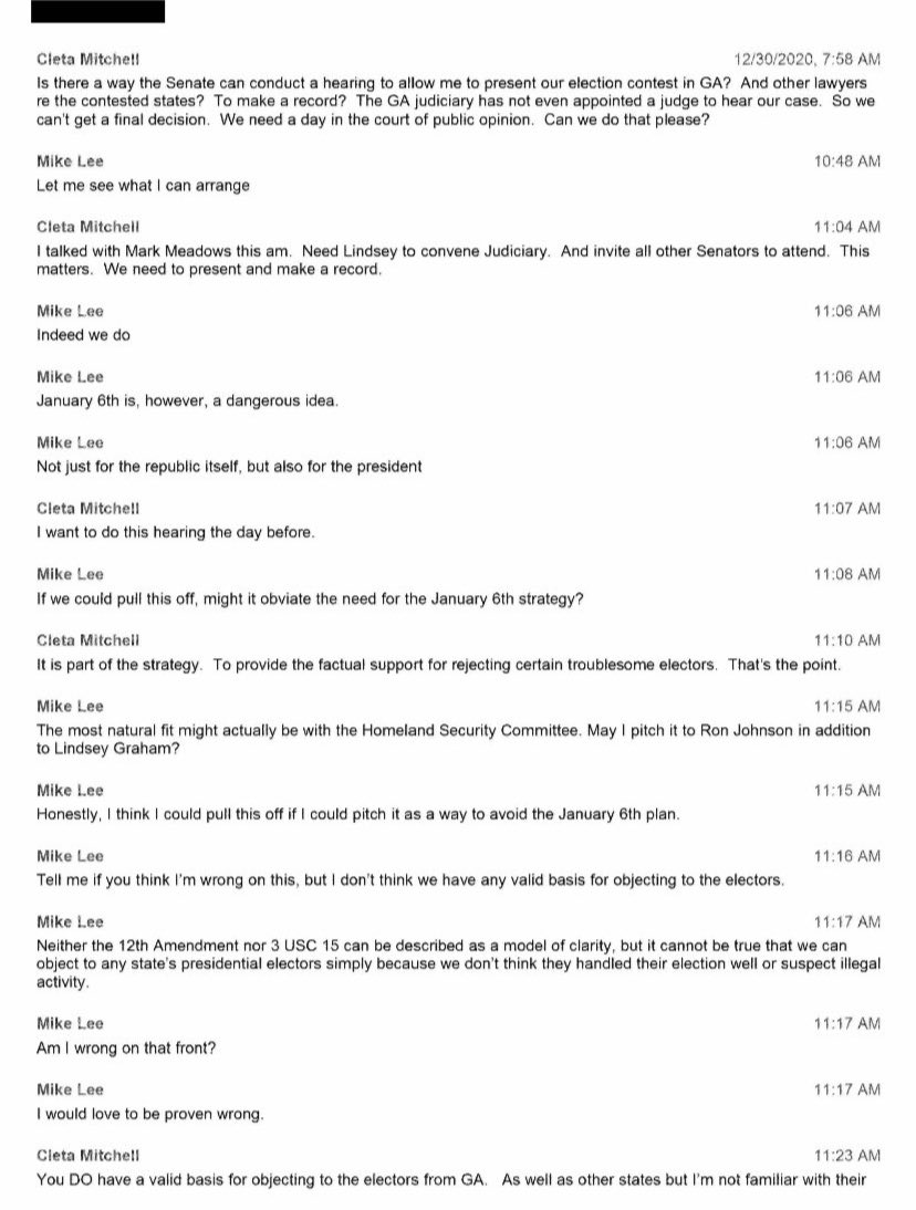 Mike Lee warned one of Trump’s lawyers that the Jan. 6 plan was “dangerous” for the republic. On the night of Jan. 6, he called Rudy “walking malpractice” in a text pleading with NSA O’Brien not to resign to preserve stability of government during Trump’s final weeks. https://t.co/HzLnWXGtvM