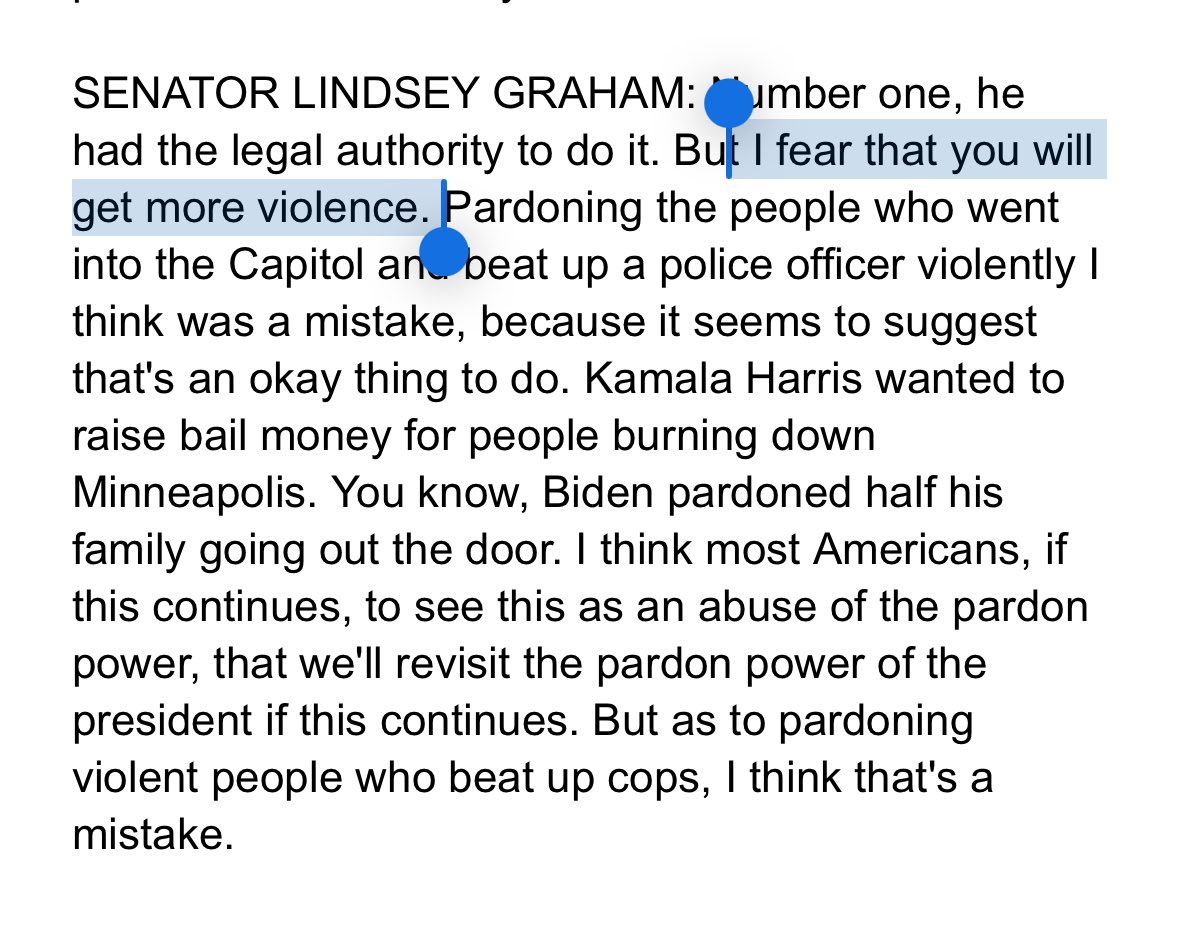 Lindsey Graham says on Meet the Press that Trump’s pardon of violent Jan. 6 defendants will encourage future violence and was a “mistake.” Says continued abuse of pardon power — including Biden’s pardons to family — could force revisiting the constitutional power altogether. https://t.co/bk6QRuMQoP