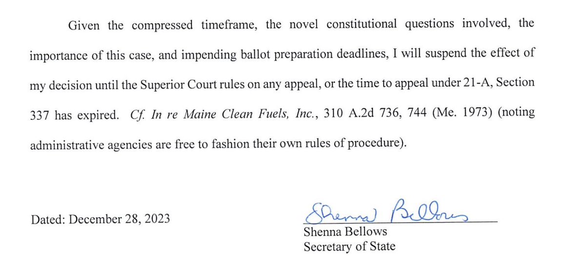 As in Colorado, Secretary Bellows stayed the effect of her decision pending court rulings. https://t.co/Aqb7IqpKnh
