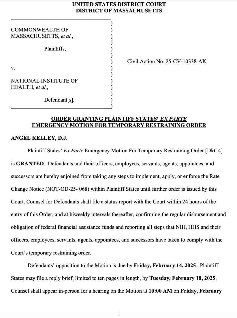 JUST IN: A federal judge in Massachusetts has blocked the Trump administration's rate change to NIH grants. https://t.co/6KIVlfkz63