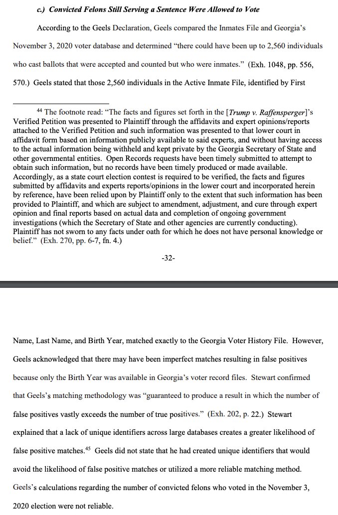 2) Convicted felons voting: Eastman relied on data showing 2,560 felons voting but also failed ot account for high likelihood of false positives. https://www.politico.com/news/2024/03/27/john-eastman-disbarred-00149468