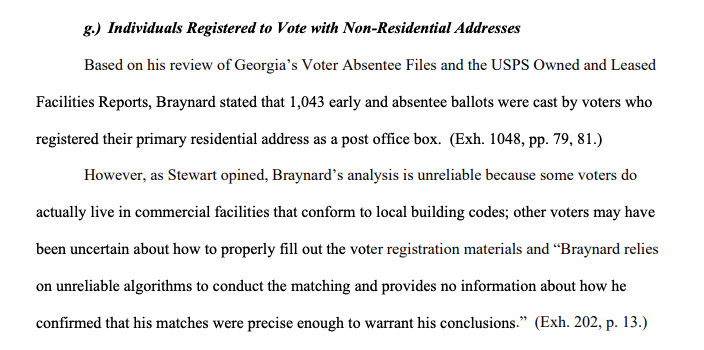 4) Eastman relied on a claim that 1,043 voters improperly registered with nonresidential addresses, but the data failed to account for some voters who live in commercial facilities or simply misunderstood registration forms. https://www.politico.com/news/2024/03/27/john-eastman-disbarred-00149468