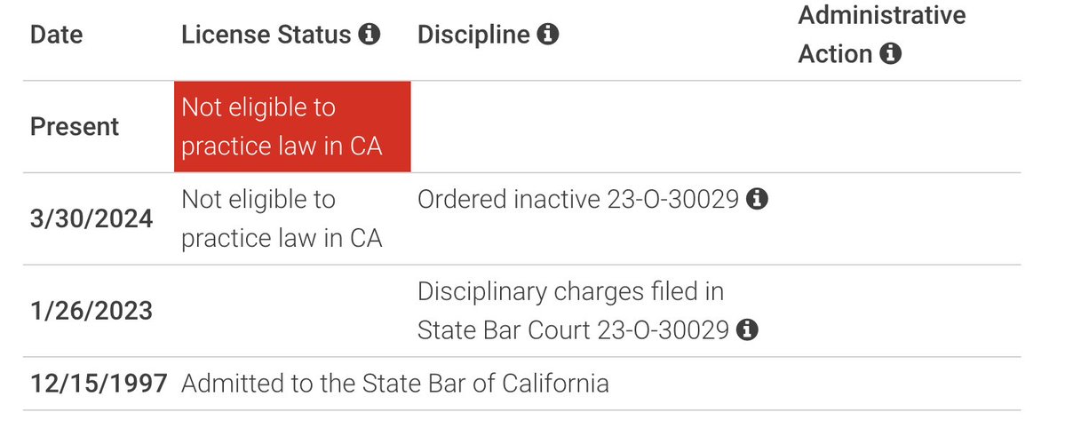 That "inactive" status for Eastman takes effect in 3 days and remains in effect until the Supreme Court either affirms his disbarment or orders a different penalty. https://www.politico.com/news/2024/03/27/john-eastman-disbarred-00149468