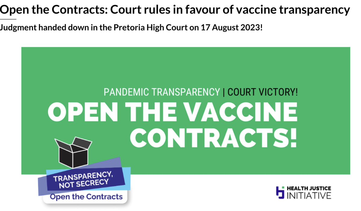 South African's may be aware of the judgment handed down in the Pretoria High Court on 17 August 2023, however it has just come to my attention. The judge compelled the National Department of Health to provide access to the COVID-19 vaccine procurement contracts. The judgement and the contracts can be downloaded here: https://healthjusticeinitiative.org.za/pandemic-transparency/ The Pfizer contract in para 5.5 states, "Purchaser further acknowledges that the long-term effects and efficacy of the Vaccine are not currently known and that there may be adverse effects of the Vaccine that are not currently known." The Purchaser is the government and they signed the contract on 1st April 2021. Therefore, any statement that these 'vaccines' were 'safe and effective' is at the very best a fabrication and at the worst deliberate misinformation. It must be assumed that governments throughout the world have signed similar contracts. They have all in lockstep pronounced these 'vaccines' to be 'safe and effective'.