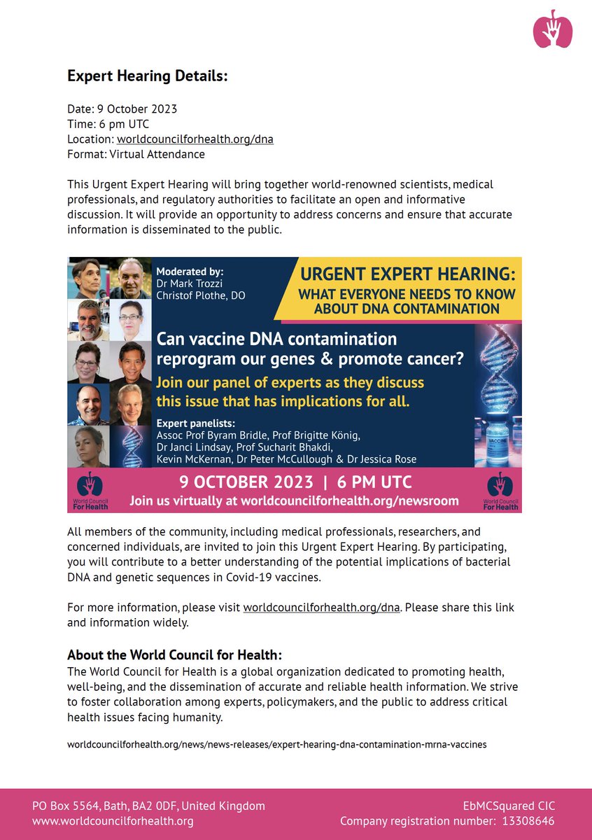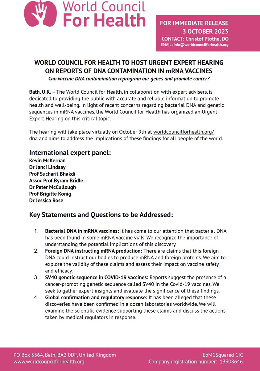 WCH Health & Science Lead Christof Plothe DO asked 36 questions at the recent #Geneva press conference on Human Rights and COVID-19: 1- Why were we not told that the Covid 19 virus was patented by Moderna in 2018? 2- Why did Moderna produce 100,000 Covid-19 vaccine doses in 2019 before the pandemic started? 3- Why, against all scientific evidence, were lockdowns and masks used? 4- Why were we not told that the ‘vaccine’ does not remain in the arm, but accumulates all over the body? 5- Why was PCR testing recommended when it is not designed for diagnostic purposes? 6- Why were the definitions of ‘vaccine’, and ‘herd immunity’ changed prior to the Covid-19 outbreak? 7- Why was a pandemic declared when the case fatality rate was akin to ’flu? 8- Why were tests on genotoxicity, teratogenicity, and carcinogenicity not carried out, and yet we were told the ‘vaccine’ was safe? 9- Why was there no proper follow-up of all people injected when using a new gene therapy product? 10- Why were doctors and the public not reminded regularly about the need to report adverse reactions to these new and experimental genetic ‘vaccines’? 11- Why was a ‘vaccine’ recommended during an ongoing pandemic, which is contraindicated in vaccinology? 12- Why was a ‘vaccine’ recommended for those who had superior natural immunity? 13- Why was a novel gene therapy launched after three months, instead of the required ten years? 14- Why were we not told that, in the Pfizer trial, more people died in the vaccinated group than in the control group? 15- Why were we told that Covid injections were ‘safe and effective’ when the evidence did not substantiate this? 16- Why were – and are – opposing voices from science and practicing medicine discredited, punished, and jailed? 17- Why were doctors, for the first time in history, discouraged from treating a disease, and told to wait for a vaccine? 18- Why was early treatment discouraged, whilst we know it is the most important tool to address any infectious disease? 19- Why were effective and very safe medicines like hydroxychloroquine and ivermectin discredited and even prohibited? 20- Why did the producers of the novel gene therapies not want their data to be published for 75 years? 21- Why were Covid injections, masks and lockdowns recommended for children when it was known that they were not severely affected and did not spread Covid? 22- Why were the Covid injections recommended in pregnancy, when over 80% of babies were lost in trials when women were vaccinated in the first trimester? 23- Why was emergency approval guaranteed when over 2,000 people died within the first three months after vaccination roll-out? 24- Why is there no scientific outcry after over 3,500 papers have been published demonstrating side effects of the Covid-19 injections? 25- Why are conflicts of interest tolerated among medical authorities, with the FDA, EMA, and WHO being 80-90% funded by industry? 26- Why was there no adequate education of doctors, patients, and the public, and thus no possibility of informed consent? 27- Why and how were the media captured so that they pushed only one agenda worldwide? 28- Why were and are effective treatment protocols, which have existed since 2020, banned and declared illegal? 29- Why are we not told about the unnecessary deaths that were attributed to Covid but actually caused by iatrogenic measures (e.g. Midazolam, ventilation) carried out in early 2020? 30- Why was the fundamental role of Vitamin D status, diet, and the microbiome not communicated, when these measures could have prevented almost 100% of Covid deaths? 31- Why was and is a certain medical procedure forced upon people against their will, whilst the Nuremberg Declaration clearly opposes this? 32- Why is gain of function research, like that relating to Covid-19, not banned worldwide? 33- Why is an mRNA product still being used, when we know that mRNA is being incorporated into the human genome, and resulting in the production of other, unknown, proteins? 34- Why has the failed mRNA concept not been stopped, when we know it increases the likelihood of the recipient getting Covid-19, thus demonstrating negative efficacy? 35-Why do these products continue to be recommended, when at least 17 million people are believed to have died due to the injections? 36-Why is there no investigation into excess deaths, and increases in rates of cancer and heart problems, etc., which started in 2021, not in 2020? What do we do when the so-called health authorities get it wrong and cause immeasurable harm? @RWMaloneMD @PierreKory @WCH_Japan2023 @P_McCulloughMD @Tammy1Peterson @mrmarkdolan @BretWeinstein @Johnincarlisle @JackieS82674799