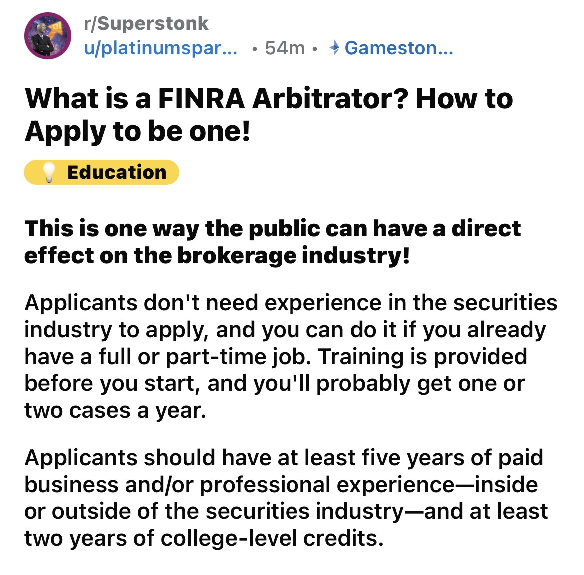 @pirateportfo @Badmojo6969 Looks like you caught her. She’s playing defense now. https://www.reddit.com/r/Superstonk/comments/17d8waj/what_is_a_finra_arbitrator_how_to_apply_to_be_one/?utm_source=share&utm_medium=ios_app&utm_name=ioscss&utm_content=1&utm_term=1