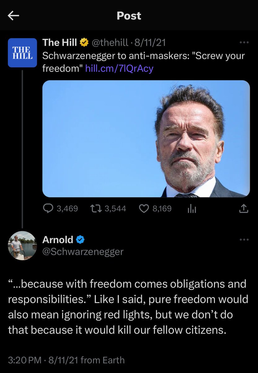 @bennyjohnson Did Arnold apologize for saying "Screw Your Freedom" yet? Until then, I don't care about anything he has to say https://t.co/JrSrXpjYUK