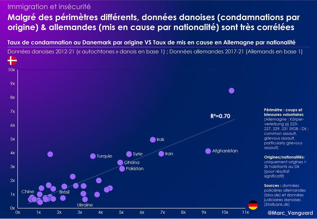 Encore plus fort, la corrélation entre données danoises (condamnations par origine) et données allemandes (mis en cause par nationalité) atteint même 0.7 : https://t.co/wzbdnD0adi