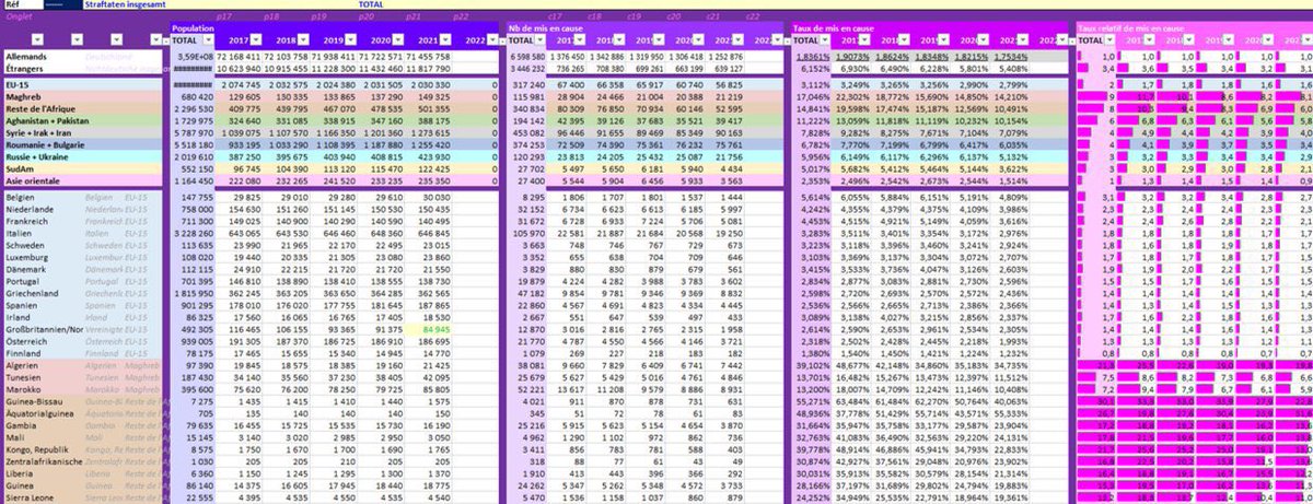 🔎 Méthodo : regardons 2 pays très différents, l’un très latin (🇮🇹), et l’autre très germanique (🇩🇪). Ces pays publient leurs chiffres de mis en cause par nationalité, que j’ai cumulé sur plusieurs années pour avoir une base de plus de 10 Millions de données (cf aperçu 👇 ) https://t.co/dYyWYTvMmB