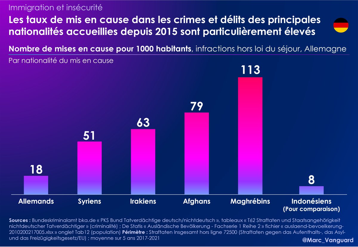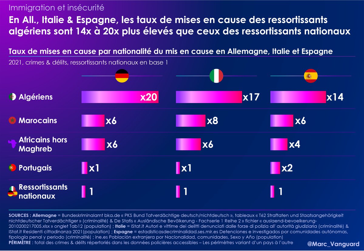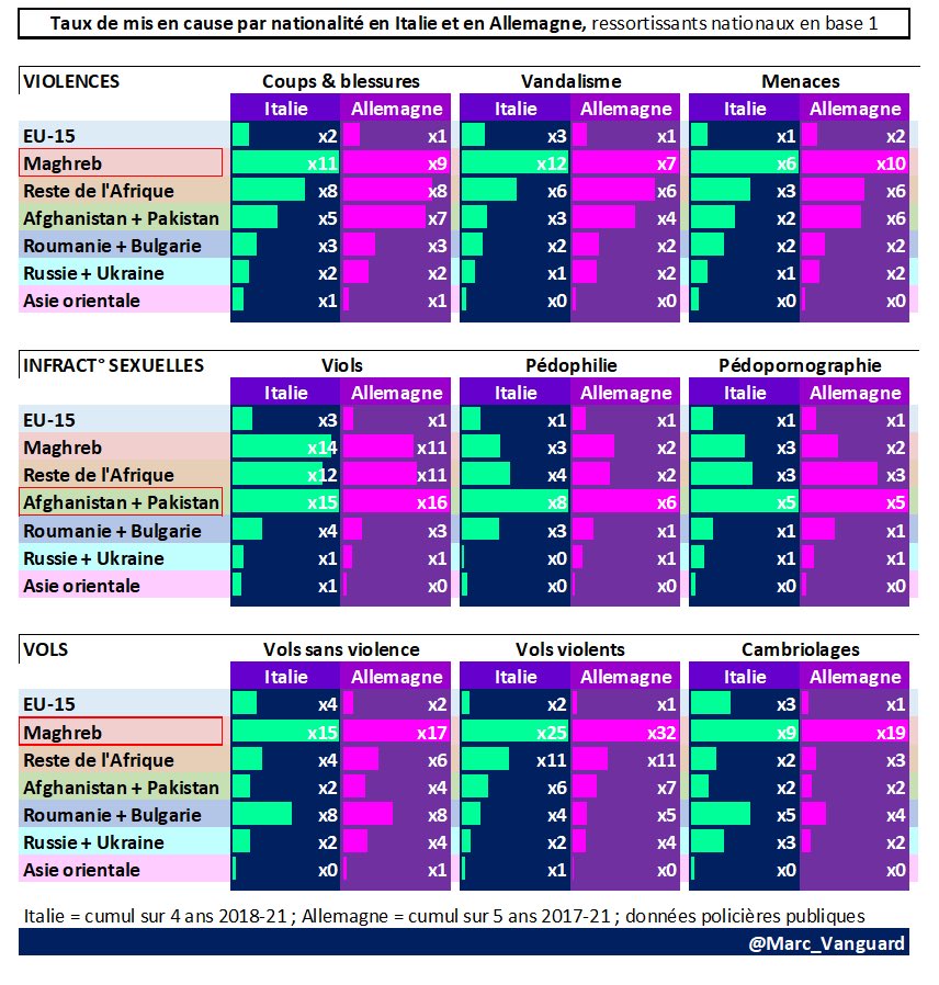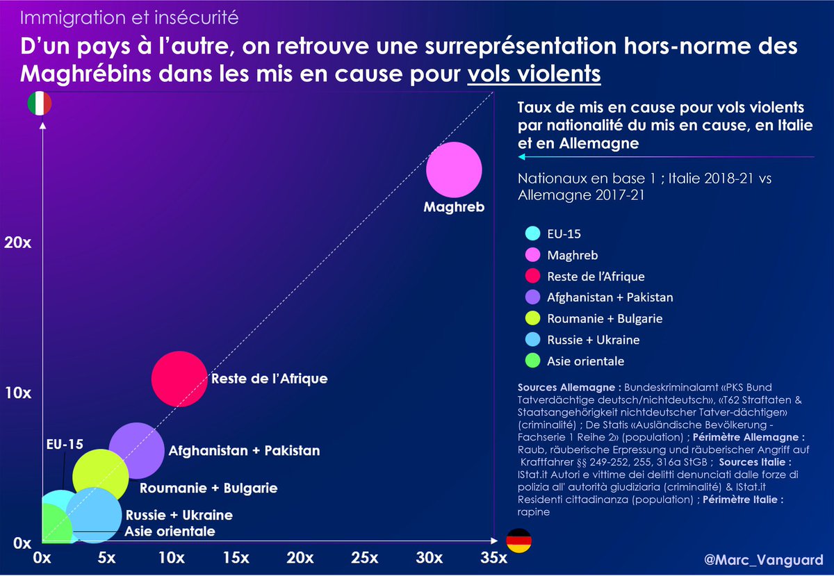 🚨 Les taux de mis en cause des Maghrébins pour vols violents sont même près de 30x plus élevés que ceux des ressortissants nationaux, en Italie, comme en Allemagne 🚨 https://t.co/G1Dt3i4bmG