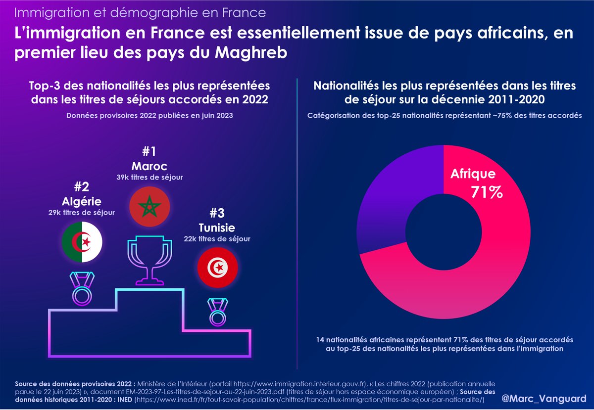 Avant-propos : ce fil est le 3e d'une série dédiée aux chiffres de l'immigration en France, il prend la suite de cette publication sur les flux d'immigration ⬇️ https://t.co/Vea7ECaYOu