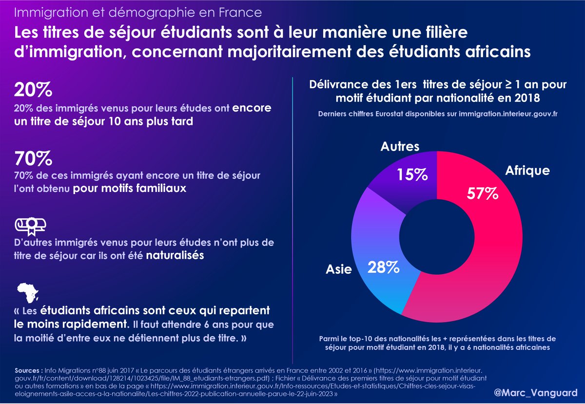 👉 D'autres restent en France mais n'ont plus besoin de titre de séjour car ils sont naturalisés. 👉 Les étudiants africains sont ceux qui ont le plus tendance à rester : https://t.co/fiK4bafKpM