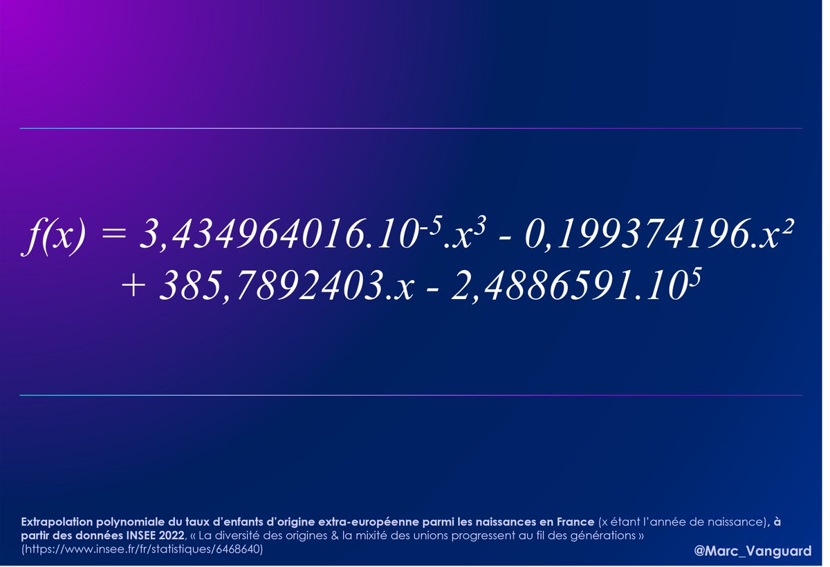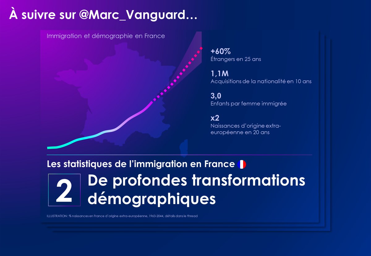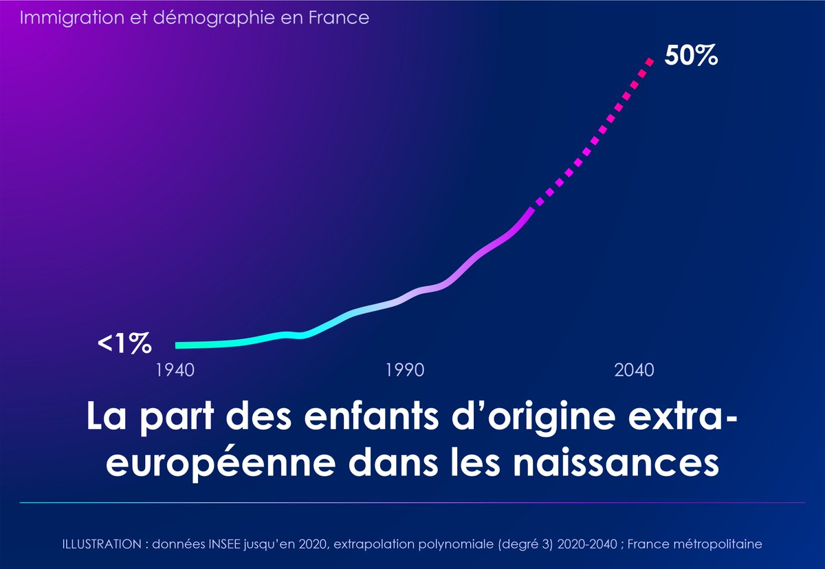 🚨 Immigration & démographie en France 🇫🇷 Beaucoup s'interrogent sur la réalité de la transformation démographique de la France. 👉 Une extrapolation des tendances actuelles donne 50% de naissances d'ascendance extra-européenne en France à horizon 20 ans. Détails dans ce fil ⬇️