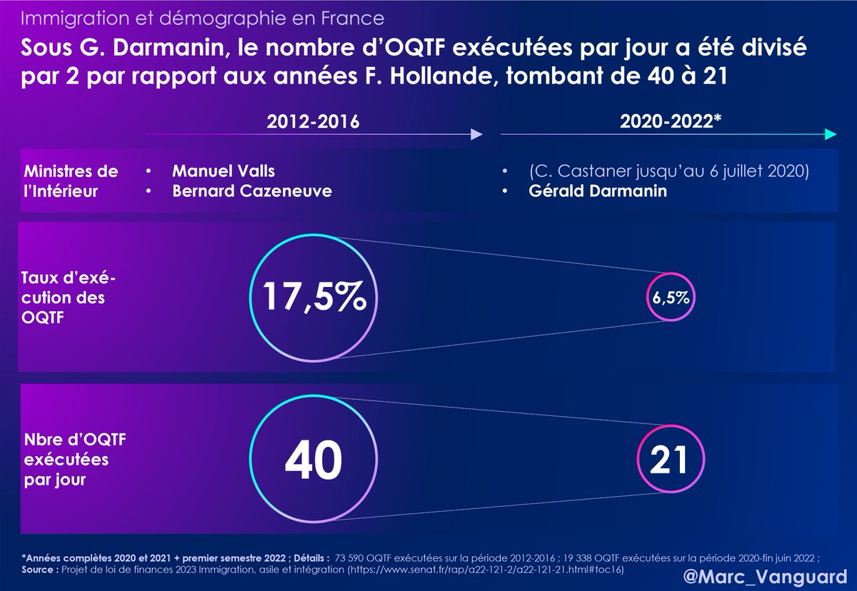 7⃣ Alors que sous François Hollande, 40 étrangers sous OQTF étaient expulsés chaque jour, nous ne sommes plus qu'à 21 par jour. Les efforts de Gérald Darmanin ne semblent pas payer. https://t.co/RpNB72mM2O
