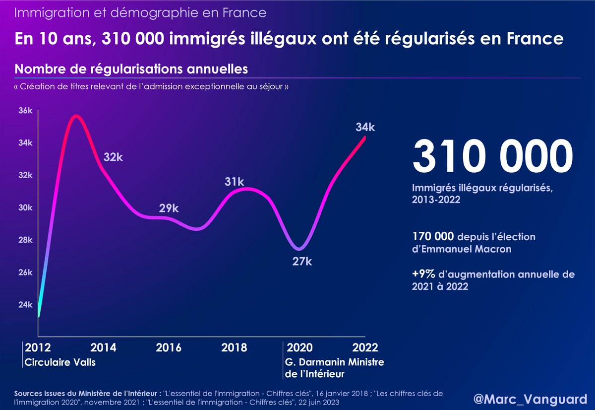 🚨 Le saviez-vous ? 310 000 clandestins ont déjà été régularisés ces 10 dernières années. C'est probablement le plus gros "non-dit" dans les débats sur la loi immigration. Je vous explique ça dans ce thread inédit ⤵️