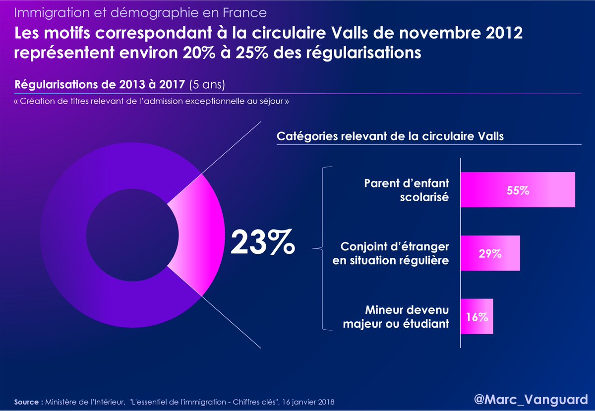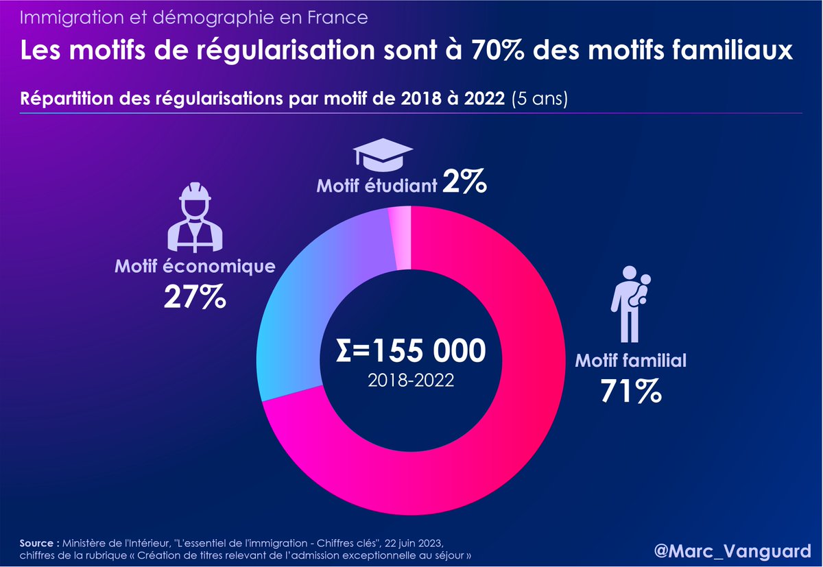 Les motifs familiaux ont pris une part encore plus importante depuis la "circulaire Valls" de 2012. Rappelons le débat de l'époque : des voix se font entendre en faveur d'une régularisation massive, mais… ⬇️