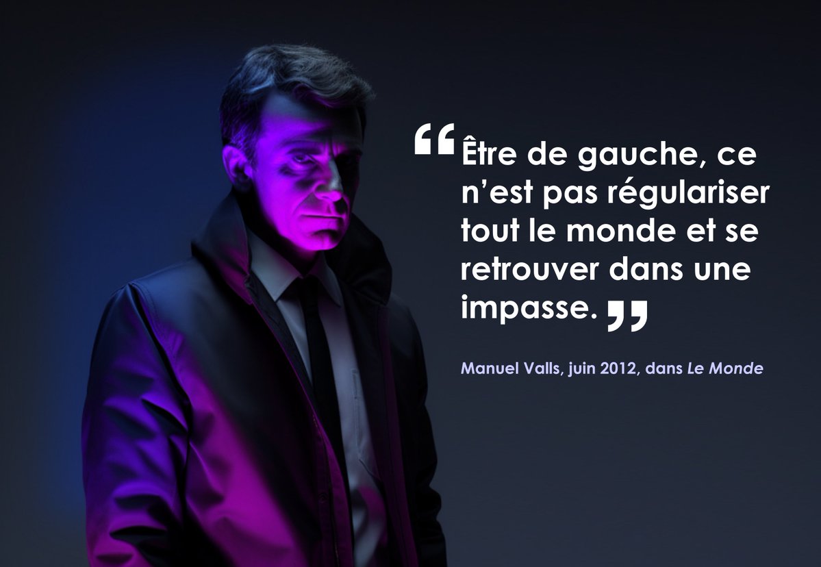 … Manuel Valls s'oppose à toute régularisation de masse, expliquant que la France n'aurait pas la capacité d'en supporter les conséquences. 👉 Pour satisfaire l'aile gauche du PS, il élargit alors les critères de régularisation.