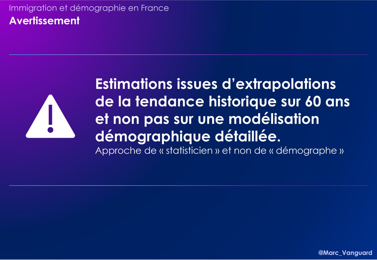 ⚠️ Il n'est pas du tout certain que les tendances actuelles se maintiennent (fécondité des autochtones et immigrés, solde migratoire, etc.) ! ➡️ Dans la réalité, le rythme de cette transformation démographique dépendra considérablement du solde migratoire des années à venir.