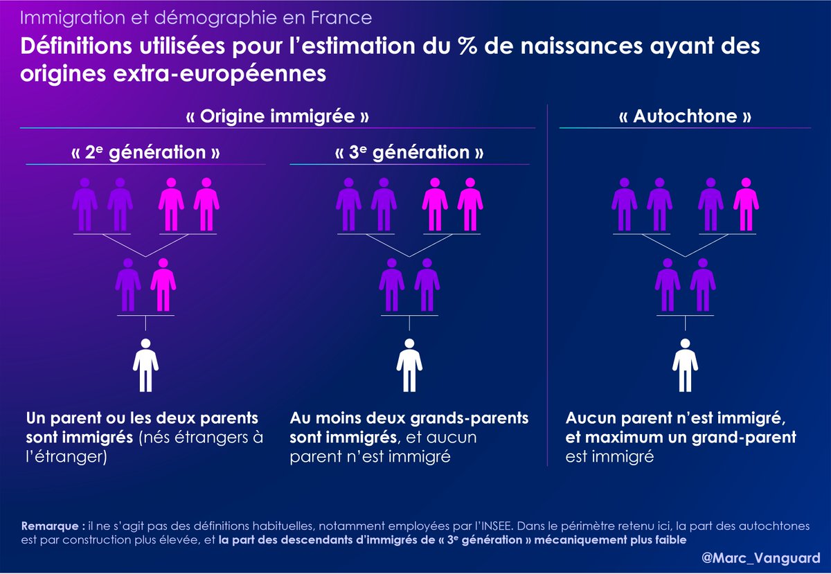 J'ai donc retenu la définition suivante pour les "naissances d'origine extra-européenne" : 👉Descendants d'au moins un parent immigré extra-européen ➕ descendants d'au moins deux grands-parents immigrés extra-européens https://t.co/nZlhoKGfVb