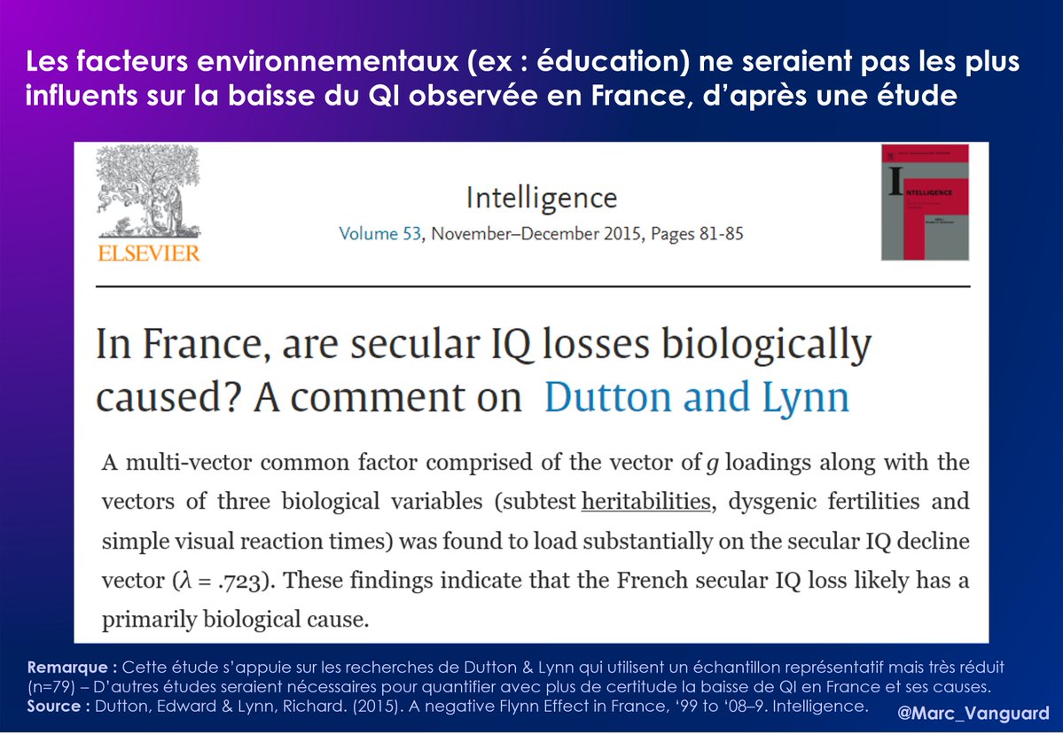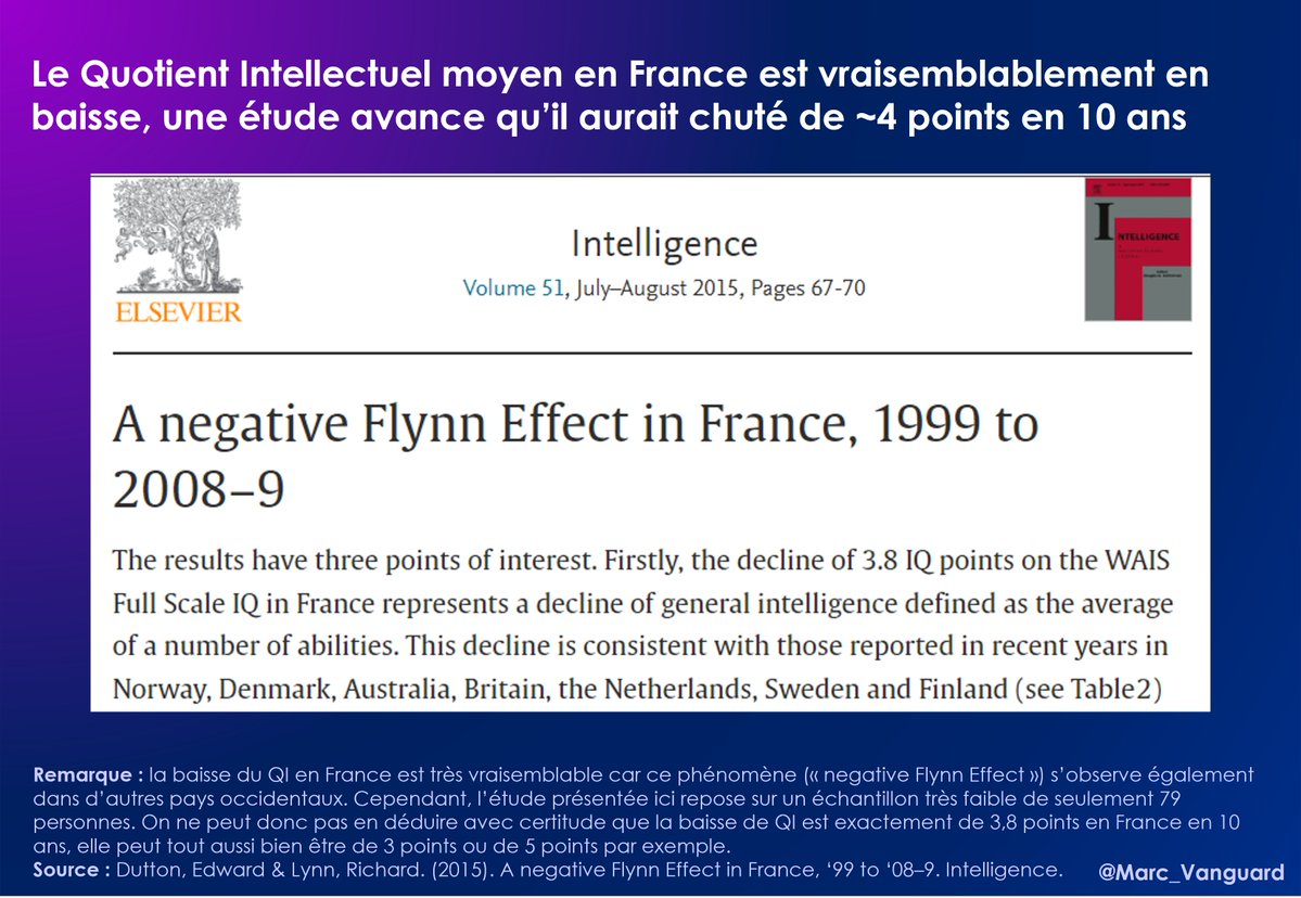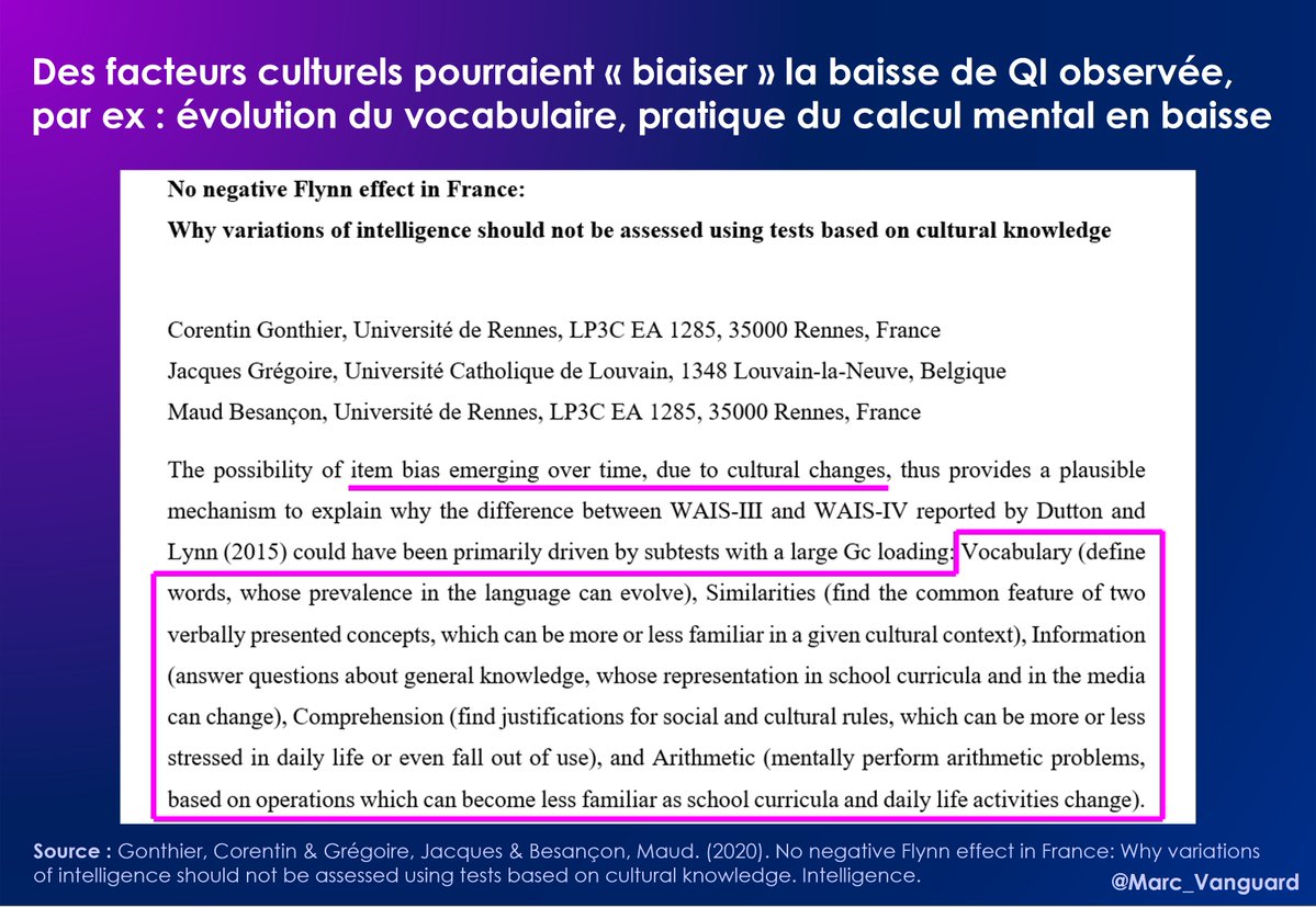 Par ailleurs, le système éducatif n'est pas forcément à blâmer pour la baisse de QI : 👉 Une étude suggère que des facteurs + importants entreraient en compte dans la baisse du QI 👉Une autre étude remet en cause le phénomène et invite à neutraliser les "facteurs culturels" https://t.co/4kkme9qqe9