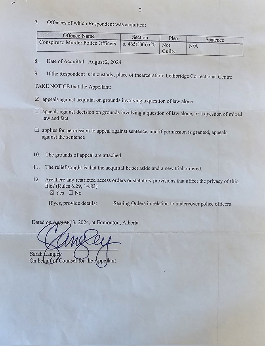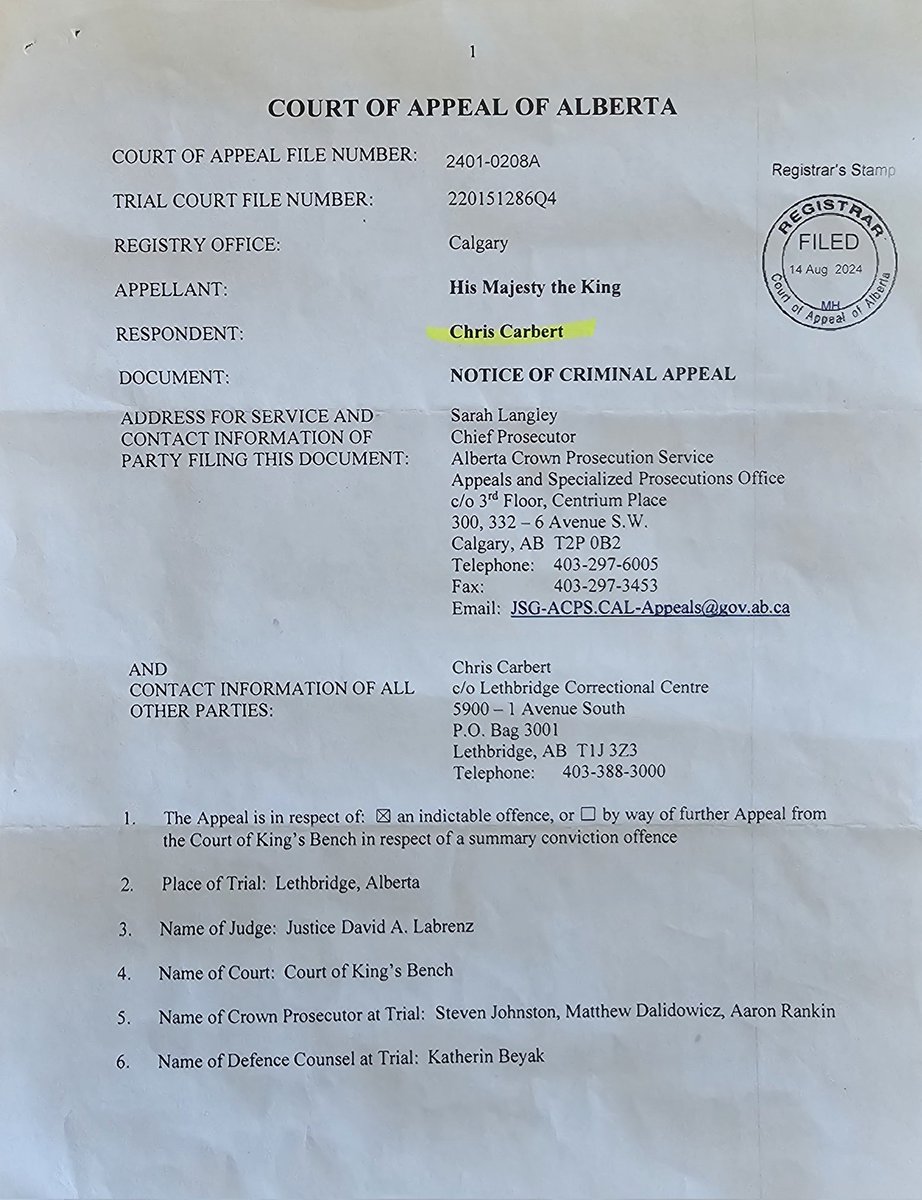Earlier today, I stopped by the Lethbridge Correction Center to pick up a document Chris Carbert had put out for me. It's the document that he was served with last week. Notification that crown prosecutors Steven Johnston, Matthew Dalidowicz, and Aaron Rankin have requested to appeal the acquittal of "Conspire to Murder Police Officers". "The relief sought is that the acquittal be set aside and a new trial ordered." Grounds for Appeal 1. The Trial Judge erred in excluding relevant and admissible evidence. 2. The Trial Judge erred in his instructions to the jury. 3. Such further grounds as counsel may advise. I have attached the first 2 pages of the document. I really want everybody to take a look at these pictures. Does anybody see Ottawa or federal crown prosecutors on these documents? Do you see anything federal at all? If you take a closer look, you will see titles such as "Court of Appeal Alberta" or "Alberta Crown Prosecution Service" The point I'm trying to make is that a lot of folks still like to pin this on Ottawa, specifically Trudeau. Well, I have news for all of you who remain willfully ignorant! Alberta Justice is its own entity, it has its own courts and crown prosecutors. We even have our own Minister of Justice and Solicitor General of Alberta, aka Mickey Amery. Alberta Justice administers justice provincial by the standards set in the Federal Criminal Code. The criminal code can be revised by an act or legislation that stems from Parliment. All decisions to prosecutor, appeal, etc. in Alberta are within the jurisdiction of the Alberta Crown Prosecutor Service. So, while Trudeau will go down in history as Canada’s worst Prime Minister, and I definitely won't make any excuses for him, the Coutts prosecutions and the travesty of justice we are seeing before our eyes is a provincial affair. We all like to think that Steven Johnston is buddies with the Prime Minister and keeps him updated daily!! Regardless of all the anger, gossip and speculation the fact stands that the people who are persecuting Chris Carbert and Tony Olienick are on Albertas payroll.