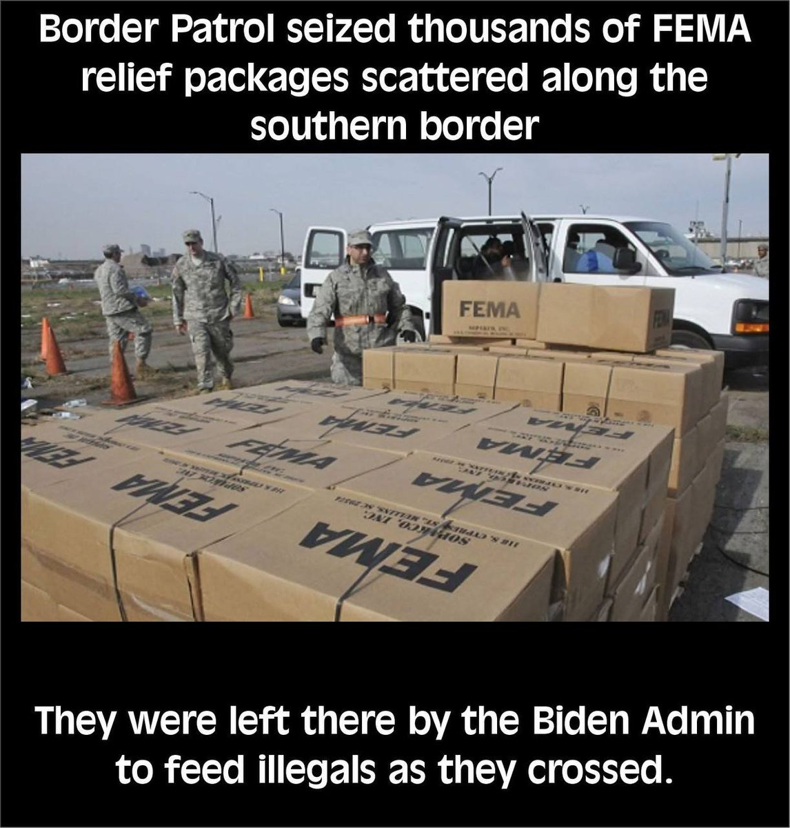 🚨 OUTRAGE: Border Patrol just seized thousands of FEMA relief packages that the Biden Administration scattered along the southern border. These weren’t scraps. They weren’t leftovers. They were emergency supplies meant for U.S. citizens in crisis — storm and flood victims in North Carolina are still waiting for this very aid. Instead of feeding American families, Biden used YOUR taxpayer-funded FEMA supplies to feed illegals as they poured across the border. While citizens go hungry and flood victims are abandoned, illegals get first-class treatment courtesy of Washington. 💥 This is treason against the American people. 👉 Follow @mcafeenew for more proof of the Biden regime’s betrayal.