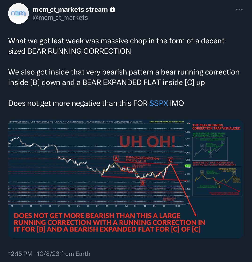 Remember when @David_Tracey told everyone “ITS EASY” “ITS COMPLETELY OBVIOUS WHAT IS GOING TO HAPPEN HERE” I reminded him it WAS NOT EASY and would absolutely NOT BE OBVIOUS That being said the BEAR EXPANDED FLATS HAVE BEEN SPEAKING VERY CLEARLY AND WE ARE SITTING IN THE MIDDLE OF VERY LARGE NEGATIVE PATTERNS (see pinned post) and then there is this posted on @mcm_ct_markets Anyone who advertises rate cuts from 2019 as hyper bullish relative to this situation for new all time highs in Q4 and then calls it EASY and OBVIOUS is getting the obvious part wrong because they are getting the OBVIOUS WRONG - because its OBVIOUS THEY ARE almost certainly going to be wrong I despise arrogance in markets and esp people who try to dominate others while at the same time being OBVIOUSLY IN A STATE OF DISSONANCE and OVER SIMPLIFICATION OF A SITUATION THEY DO NOT UNDERSTAND $SPX $SPY $ES_F