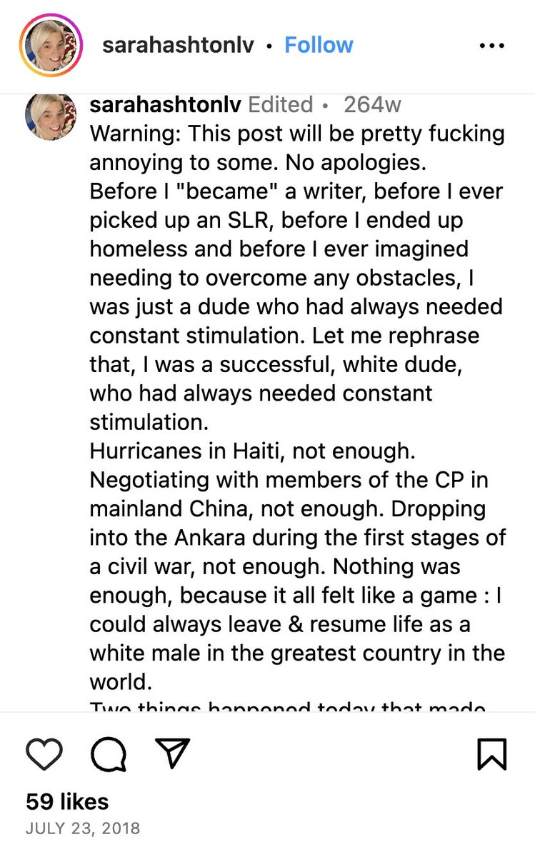 In 2018, he admitted that his many troubles followed a need for “constant stimulation.” Running toward natural disasters and civil wars wasn’t enough because “it all felt like a game” that he could “leave & resume life as a white male in the greatest country in the world.” (5/) https://t.co/yZkDe4uFfy