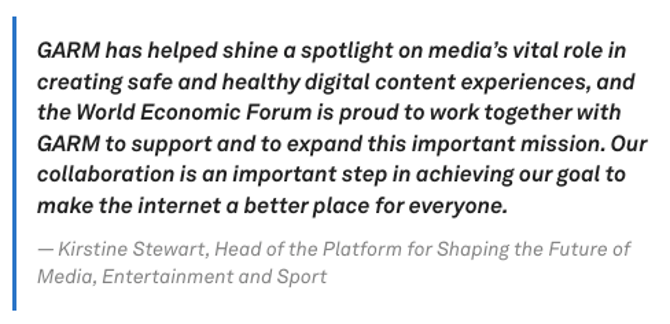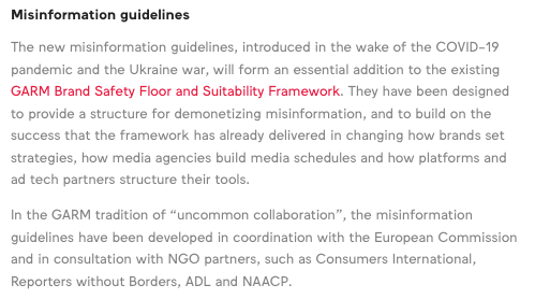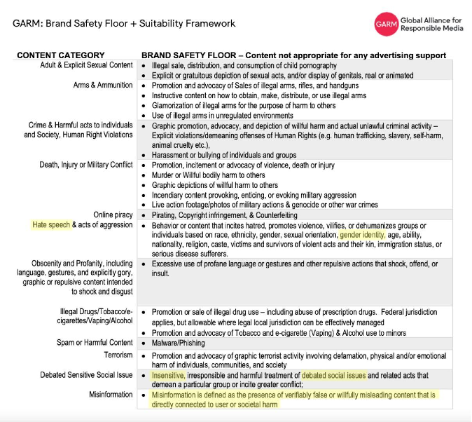 GARM is so powerful and controls so much advertising money (like that of Bud Light) that YouTube, Meta (FB & IG), Twitter, TikTok, Snapchat, and others are writing pages of reports about how they will run their platforms to satisfy GARM standards.