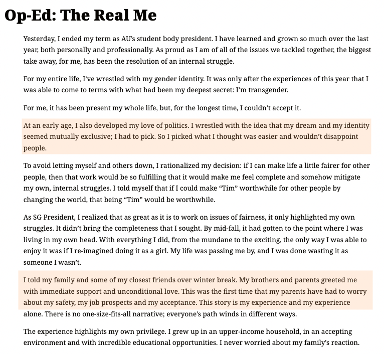 4/ When Tim first claimed to be "Sarah," he said that identifying as trans felt “mutually exclusive” to achieving his political career goals. But, his career shows the opposite. Once a mere white guy, Tim suddenly could claim DEI privilege. https://t.co/jmQ8Lo8TZm