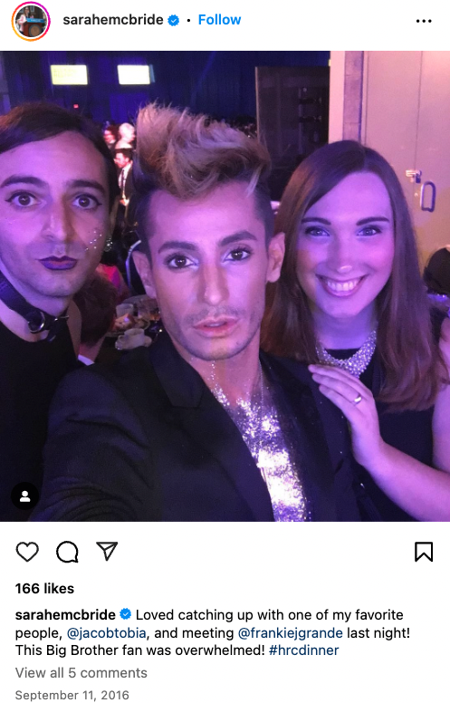 9/ The celebrity schmoozing included run-ins with LGBT activists such as “Laverne” Cox and Frankie Grande. He also rubbed elbows with sketchier figures, such as Jacob Tobia. https://t.co/6mpWbWQjjo