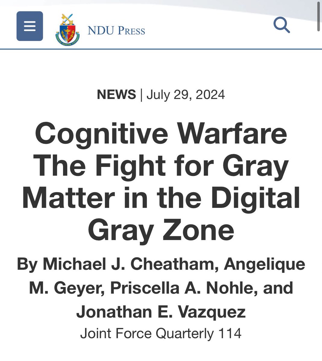 NATO Innovation Hub report on Cognitive Warfare: definitions threat framing criteria policy gaps Link: https://innovationhub-act.org/wp-content/uploads/2023/12/Cognitive-Warfare.pdf https://t.co/divCPK13B5