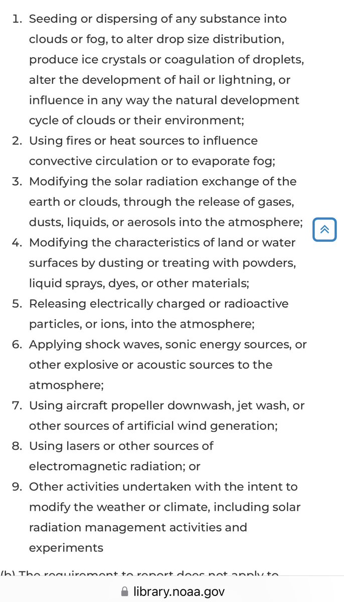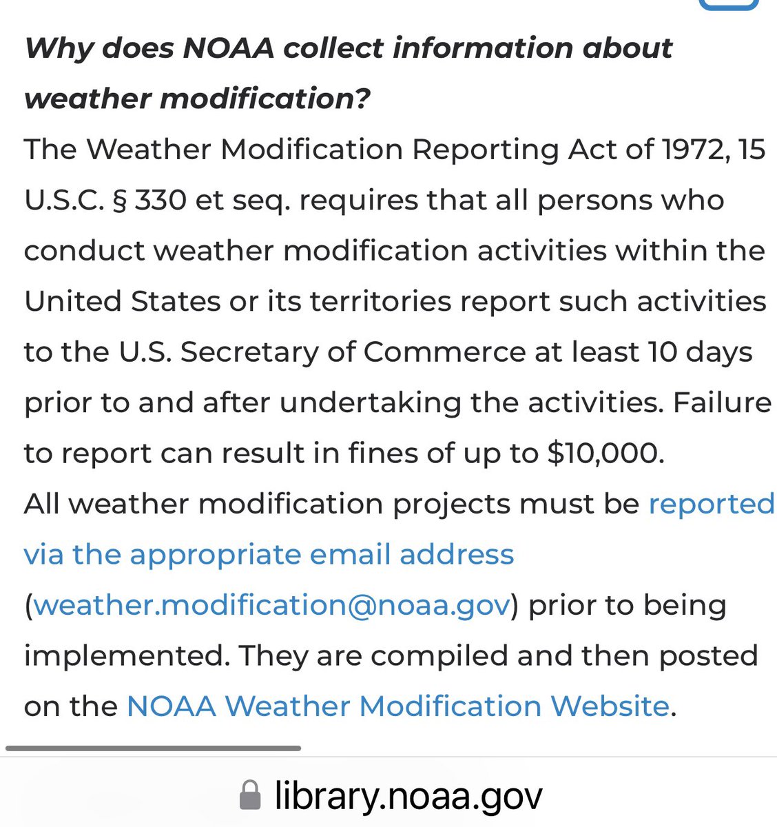 Everyone keeps asking, “who is they?” Well some of them are listed on NOAA, as well as most of the ways weather can be modified, because they are required to report it to the Secretary of Commerce by the Weather Modification Act of 1972. The NOAA government website has a library catalog of 1,026 entries of weather modifications, but that’s not all of them. If your home or business or property is damaged or a loved one is killed by their weather modifications shouldn’t you be eligible for compensation? After all, did they ask you if you agreed to our weather being modified?