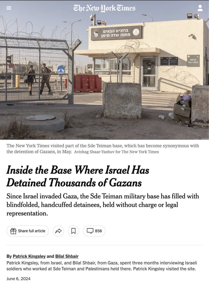 2\ NYTimes reported in June that Israel is RAPING kidnapped Gazans in the Sde Teiman prison camp: A Gazan died after penetration by an electric stick A female IDF officer ordered the rape of a senior Gazan nurse A UN worker forced to sit on a "hot metal stick"