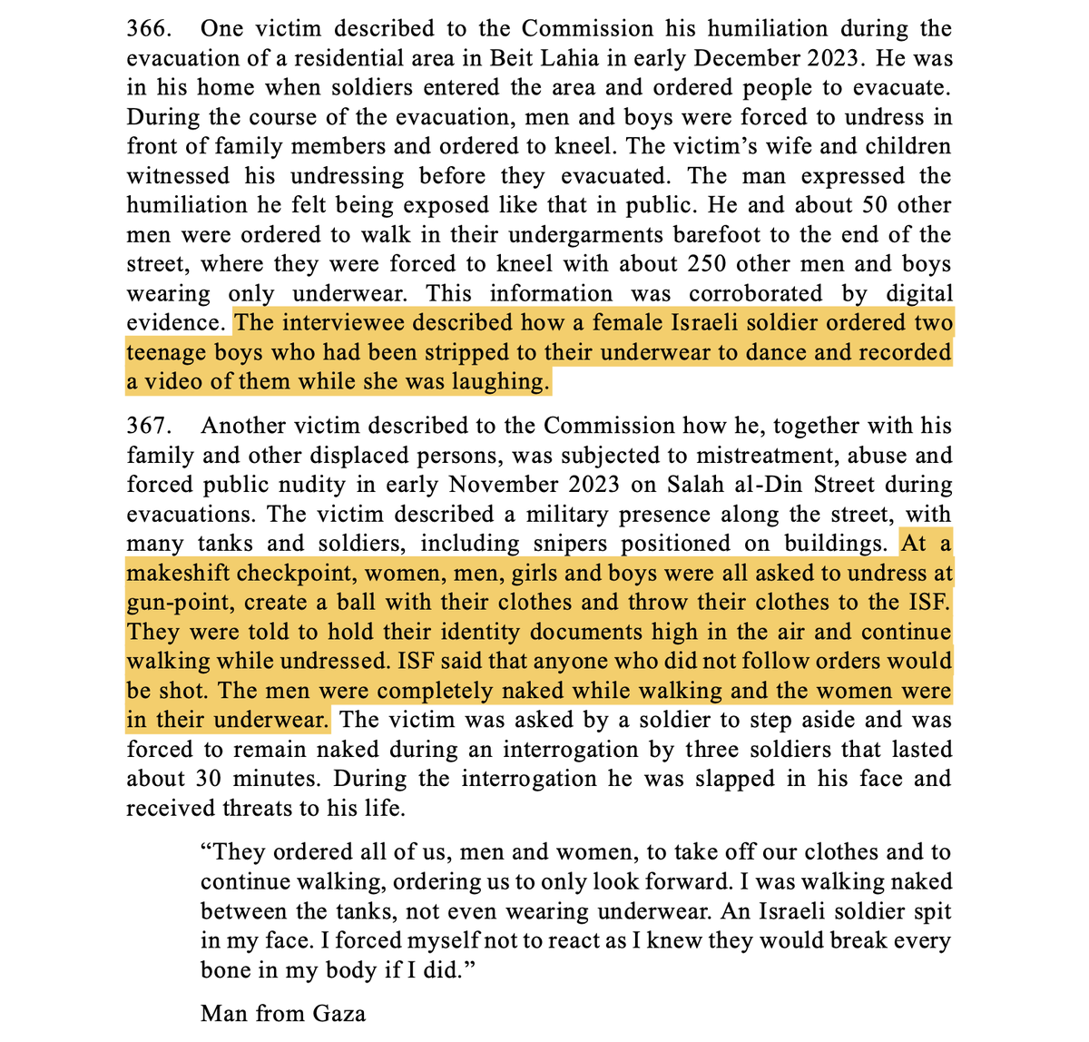 ๐จUN finds evidence of systematic Israeli sexual violence against Gazan women, CHILDREN & men! Women being stripped down to their underwear & sexually harassed while male relatives are forced to watch Female soldier forced boys to dance semi-naked & filmed them while laughing๐งต https://t.co/bPpSEJIzTq