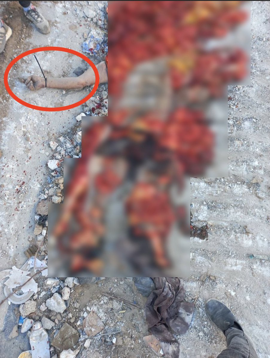 An Israeli army vehicle drove over & fully crushed this Gazan detainee, likely after he was interrogated & tortured by the IDF, in al-Zeitoun neighbourhood in Gaza The zip ties are still on his arm; meaning his brutal murder was deliberate & premeditated 0 headlines about this! https://t.co/7deA1SXmnS
