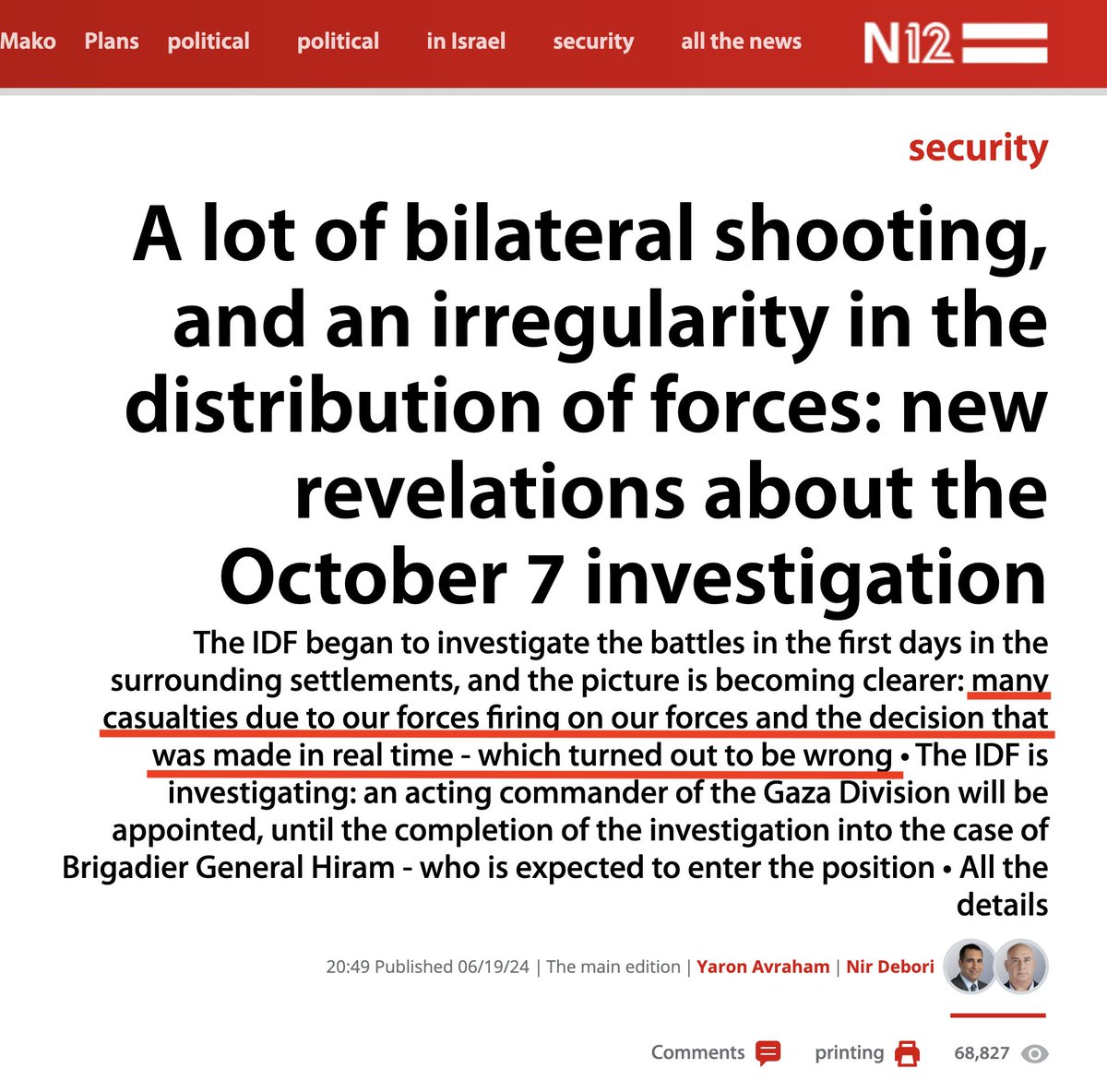 Israel now admits: "many" Oct 7 casualties were killed in "multiple" friendly fire incidents of "our forces firing on our forces" & due to "decisions made in real time - which turned out to be wrong." https://t.co/QeKnlOTSw4