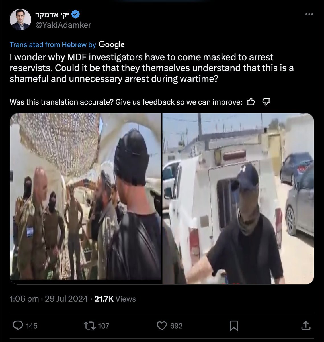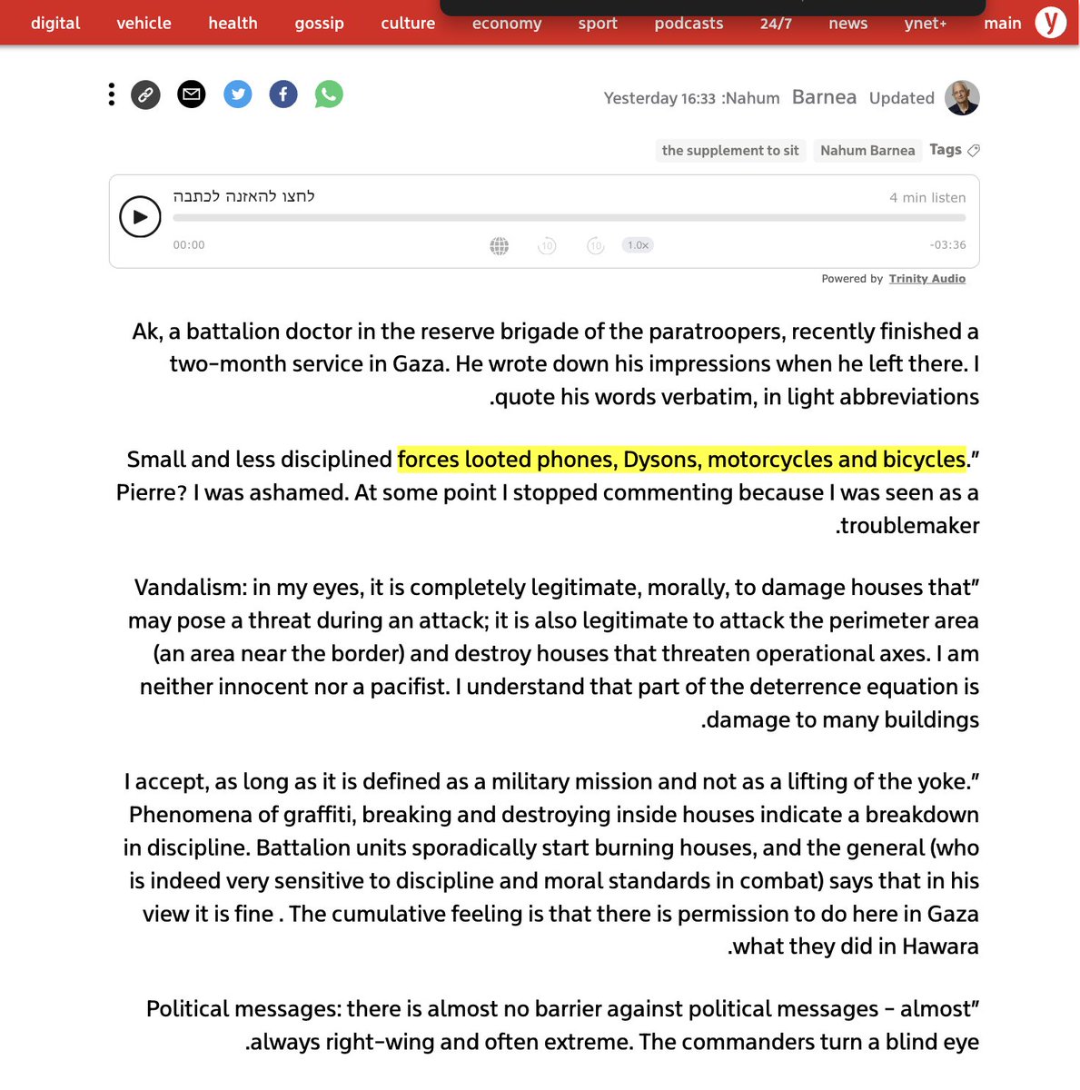 A racist IDF doctor that went into Gaza testifies that a soldier executed at point blank an unarmed Palestinian with multiple broken limbs who had surrendered himself to Israeli troops. He adds that soldiers break into homes & steal everything & the commanders turn a blind eye.. https://t.co/5WA08vDXQm