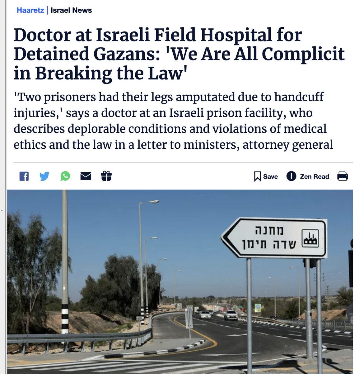 6\ Israel's gov knows they're committing a crime against humanity at the Sde Teiman "concentration camp" So they instructed doctors there to "refrain from signing their names on the medical documents... [or] introduce themselves by name to the detainees" https://www.haaretz.co.il/health/2024-03-27/ty-article/.premium/0000018e-7f49-d680-a1cf-ff4f955a0000