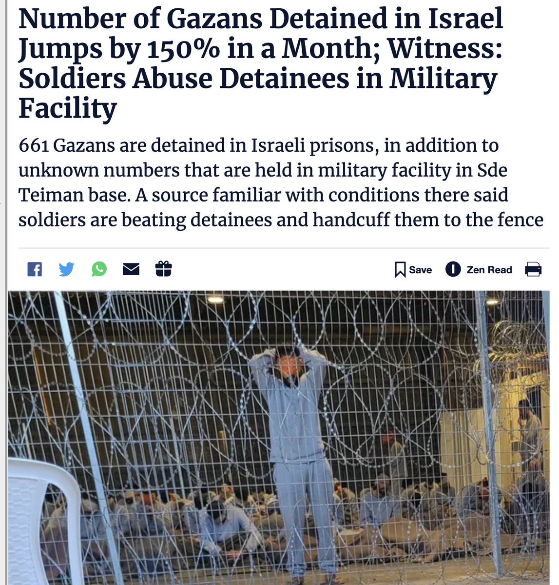 3\ Israel does NOT reveal how many Gazans they currently hold at the Sde Teiman "concentration camp" & don't allow any access to the Red Cross or any other international group. The number of detainees is in the thousands! They're subjected to unimaginable nonstop daily torture!