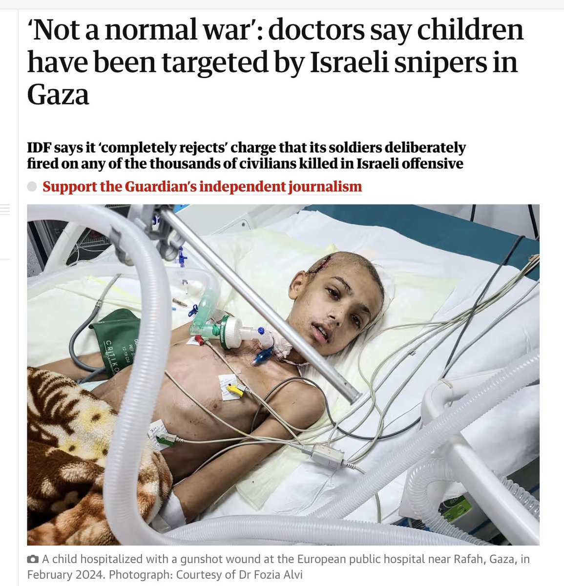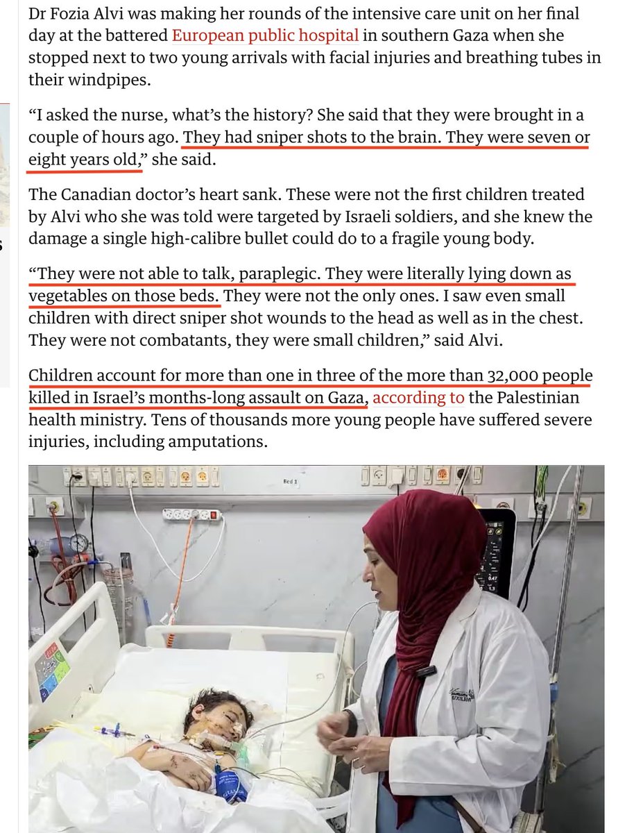 Israeli snipers taking potshots at 7-year-old CHILDREN: IDF snipers aim for the head & chest. "They were not able to talk, paraplegic. They were literally lying down as vegetables on those beds" Dr. Fozia Alvi recounts 2 kids shot in the head! Over 12,000 children slaughtered! https://t.co/Ibd4vh3AyI